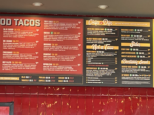 Read moreWhen we showed up, there weren't too many people in the restaurant nor outside on the patio. There was 3 of us. The people at the registers were pretty friendly. We ordered a Matador (secret menu), 2 Tipsy Chicks, 1 Brushfire and 1 Beef Fajita. We also got free chips and queso with my friends points on their app. We went to get our drinks and I was happy to see they had aguas frescas. I went with Strawberry Dragon fruit and Lemonade. Our food came out relatively quickly and it looked delicious. Let me tell you something, the ingredients inside the taco were fantastic! I had a Tipsy Chick and the Beef Fajita. The meats were marinated perfectly and the veggies tasted great. What I couldn't get past was the tortillas. They were room temp at best. They tasted like they were warmed up in the microwave in a trapo (dishcloth). My friend asked someone if next time we visited, could we tell them to throw the tortillas on the grill because they weren't hot. The reply we got was "Really? Because we make everything right back there." Again my friend asked if we could ask them to throw the tortillas on the grill next time we visited. She said she would ask and be right back. We stayed talking at the table for about another 10 minutes. She NEVER came back out. While I believe that their ingredients are fresh, those tortillas are not. You can always tell when a tortilla is handmade and when it's commercially made. These are...