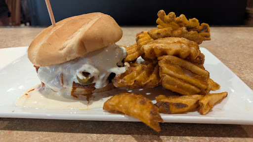 Read moreIt's an okay place to grab a quick bite or have a beer with your buddies. I was in the area and had an hour to kill over dinner time so I decided to give this place a try. I had the Big Louie Burger with waffle fries. It says that the burger comes with a fried egg, so I was expecting a sunny side up egg, but it was more like a flat miniature omelette. The burger was good, didn't care too much for the bun but overall it was okay. The waffle fries were good and they have Coke products which I always appreciate. The place itself is pretty dumpy, more like a truck stop restaurant from the 80s, but it was semi clean. Overall not worth coming back to, neither for the food nor for the ambiance. The best thing was that you can actually eat dinner here for under $20, tip not included.