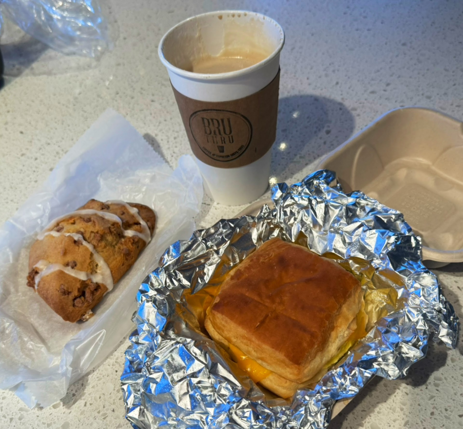 Read more3/9/24: I’m leaving another/updated review because I love the Bru House so much! They’re only 5 minutes from my house and the best coffee shop in the area! One of the best aspects is the drive thru which is rare for a local coffee shop. I recently stopped by on Friday morning to treat myself to breakfast and coffee and it was so good! I got a white mocha which was absolutely delicious and perfect in every way - not overly sweet and the espresso was perfect. I got a breakfast sandwich without meat and added all the veggies and it was scrumptious! I also got an apple cinnamon scone which was also delicious! It was fluffy and more cake-like than biscuity/crumbly. As always, the employees were very friendly!