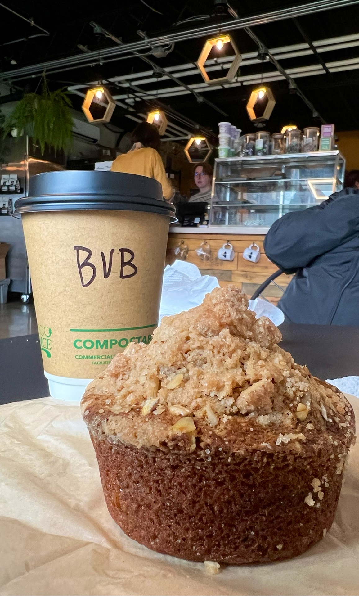 Read moreBourbon vanilla bean hot coffee and a maple syrup coffee with a pumpkin walnut muffin 🤤. Each coffee definitely has their own unique flavor notes along with their house made syrups. Couldn’t resist a chocolate chip cookie with sea salt 😯. The ambiance is very chill and aid back with access to the bar (when open) AND is dog friendly 🐶