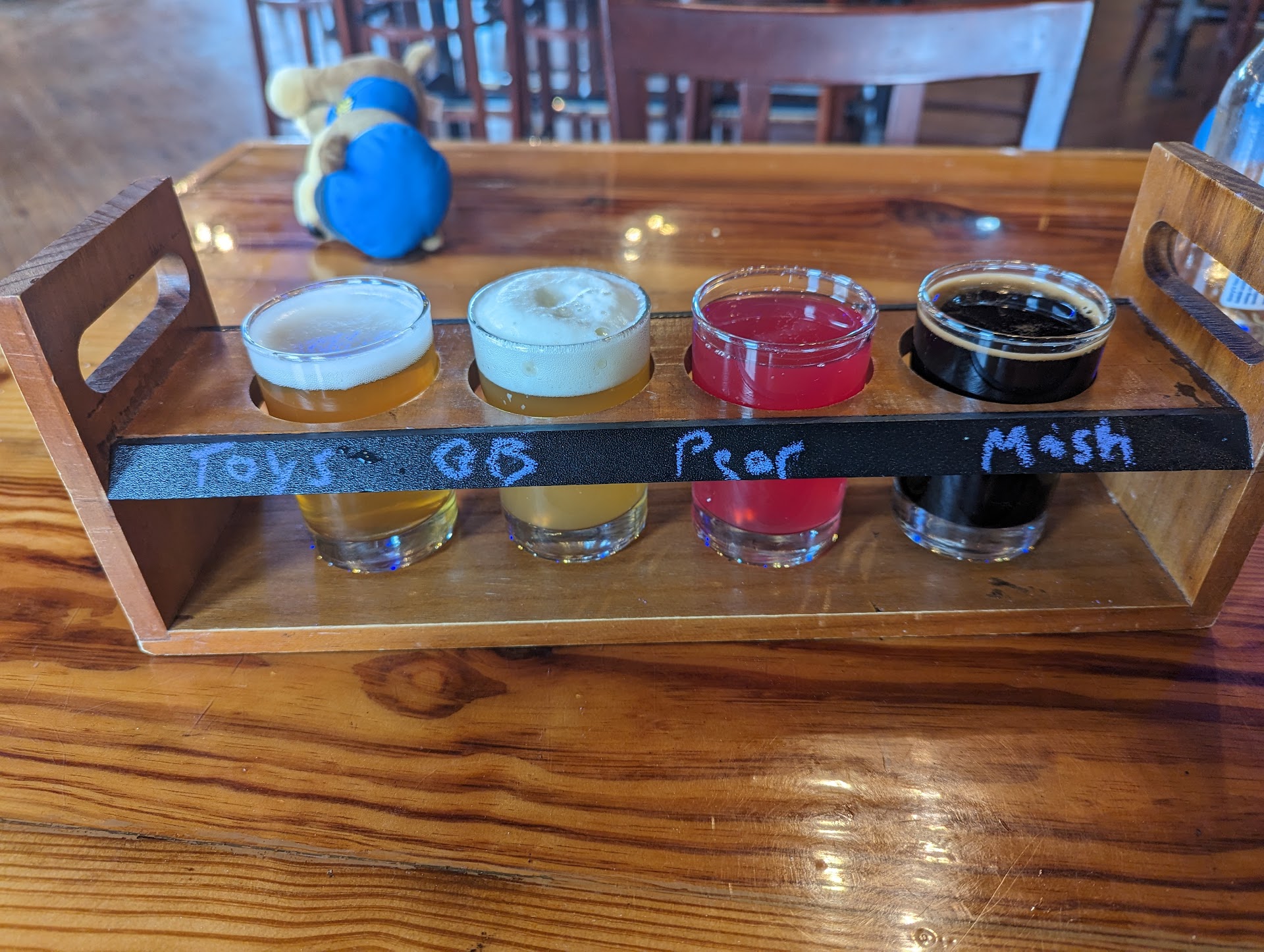 Let’s start off with the beer. The signature brew Steeple is a light offering of a New England IPA. Good front IPA taste and a very light juice taste on the back side of the beer. I like this beer since other juice IPA’s seem to take that haze over the top. The Marzen (spelling) had a good spice and overall good flavor to the body. I also tasted a Kolsh (Kinet-Cut) and Pew Pew. Those were ok at best.