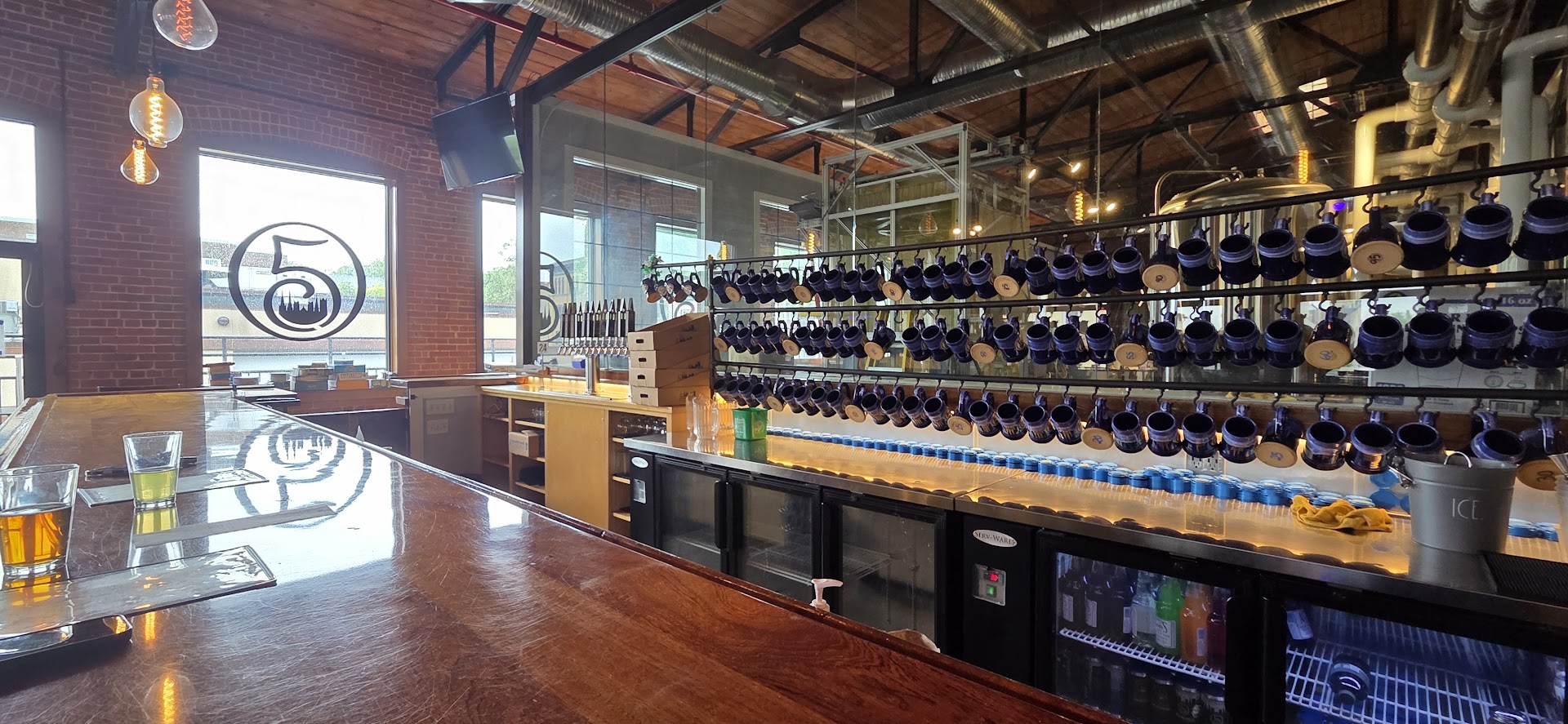 Read moreThis is a nice brewery to visit if you're in the area! They opened the end of March 2018. They named the brewery 5 churches as you can see 5 steeples of churches from their windows. They have a nice variety of beer available and have a nice open and clean area on the 2nd floor! They do have an elevator if you are unable to use the stairs. We really enjoyed the steeple people beer (imperial ipa) and also liked onomatopoeia (imperial ipa), and the microphone smells like Idaho (imperial ipa). Of course, the name of their beers are great and creative! We also enjoyed their pretzels and pizza (only food that is served here)! They have a wood fired oven and make personal pizzas which were very tasty - we had the mushroom and garlic pizza. We also had the everything pretzel with beer cheese and mustard which was fabulous! The pretzel was really fluffy and chewy on the inside and crispy on the outside-perfection! The dipping sauces (beer cheese and mustard) provided were also delicious!! They also sell soda or wine too if you do not want to drink beer. The staff is friendly and wonderful here! We would certainly visit again if we are...