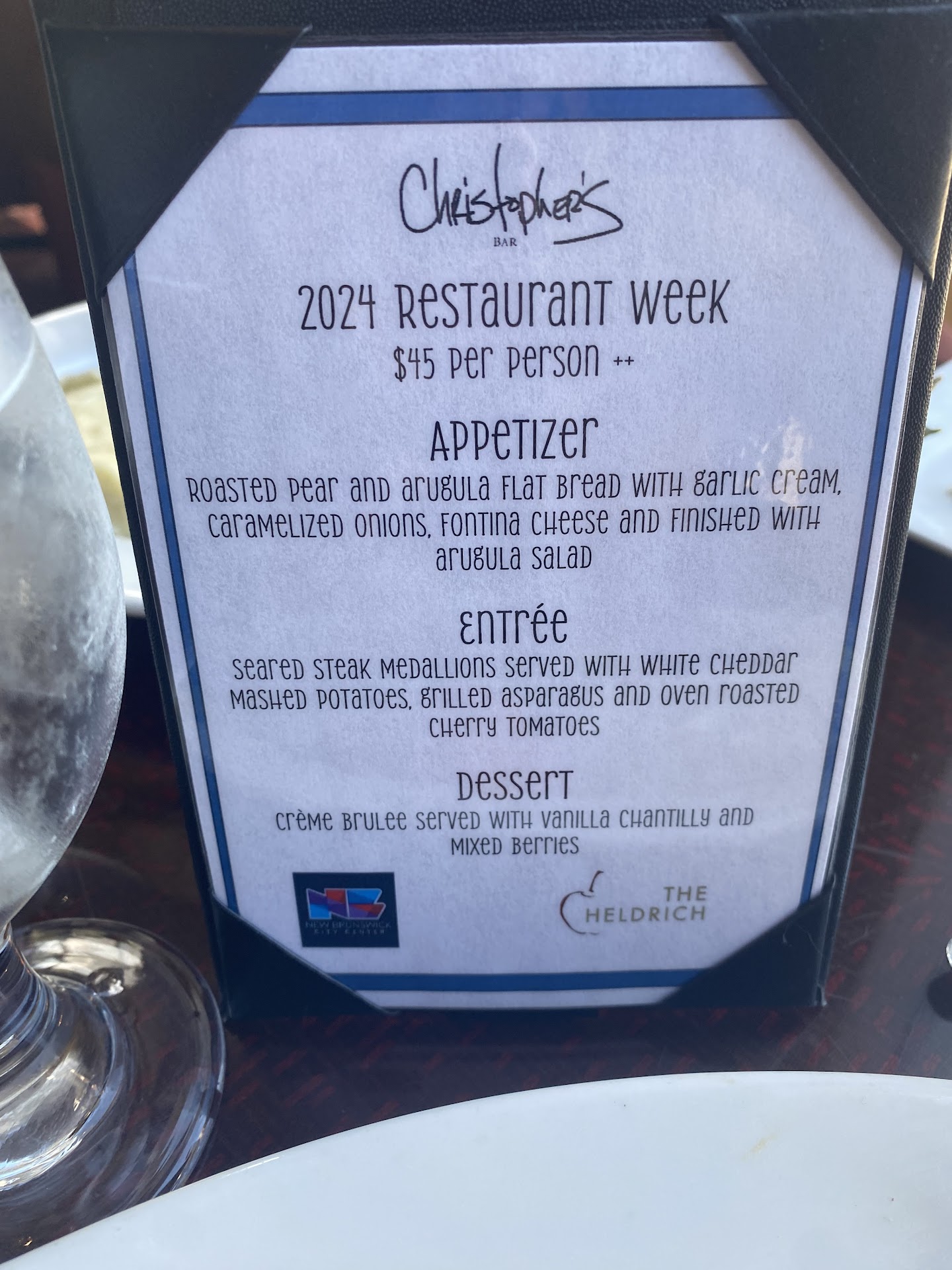 Finally, BEWARE that Christopher's no longer honors dining certificates sold in their name through Restaurants.com. The manager informed me with a an apology, but with no offer to comp any part of our meal, even the iced tea. I expected better treatment than that, but I didn't actually press him on it further. The dining certificate was one reason I chose this restaurant, and I will probably choose a different one next time.