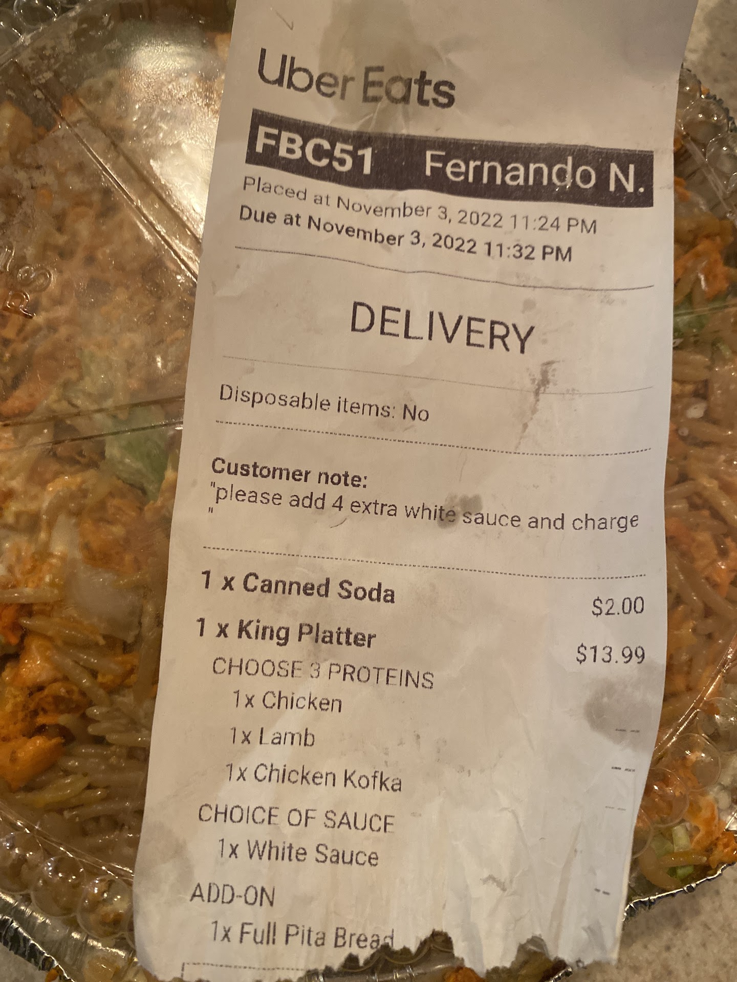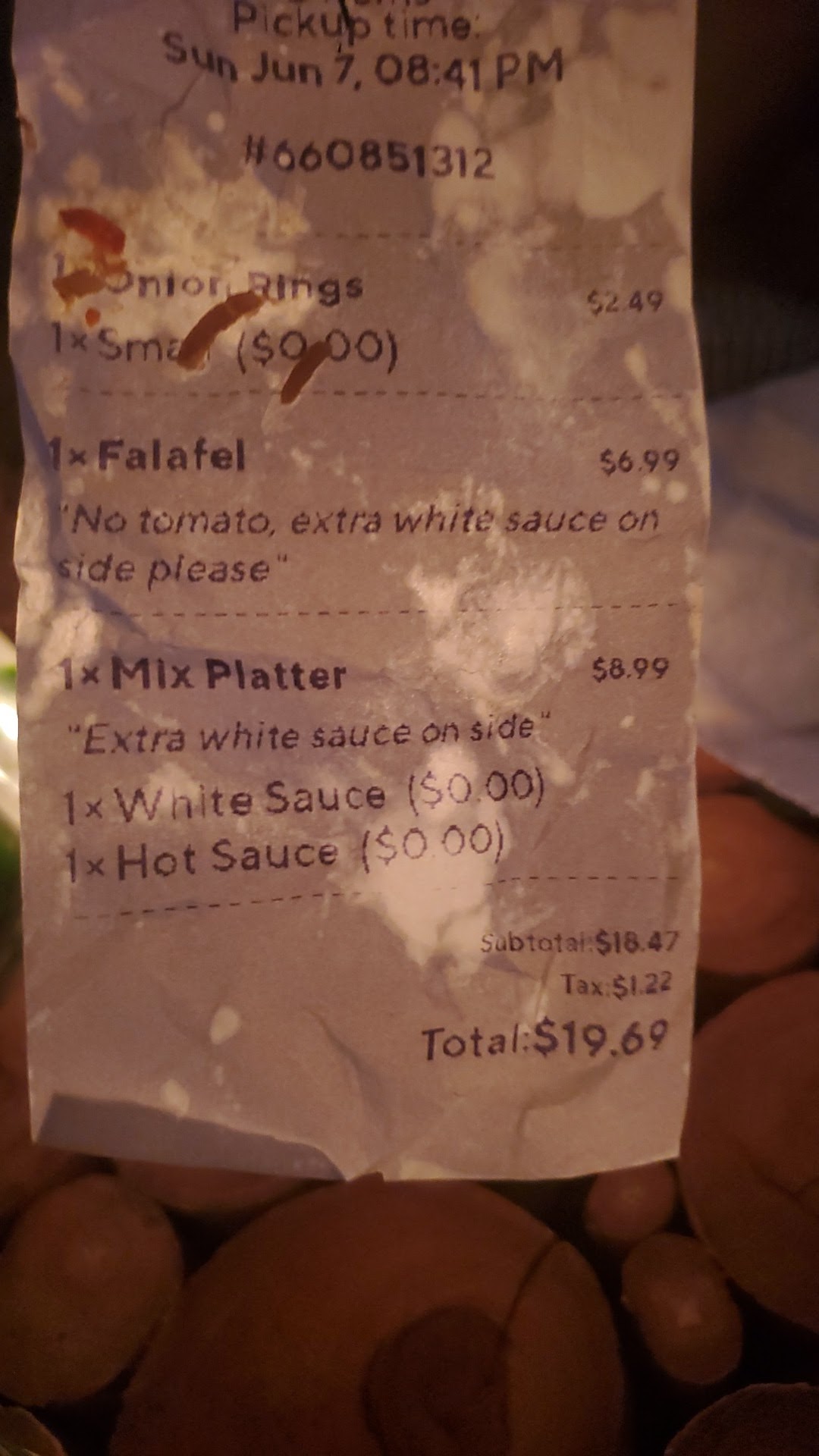 Read moreThe food here is undeniably good. However, because of the terrible customer service, I will not be returning. I had ordered delivery from King of Gyro previously and had not received the white sauce. This was disappointing because the white sauce really makes the meal. I figured that this was just a slip-up, and ordered again from King of Gyro. This time, I was not given the white sauce or fries I ordered. Because half of the items were missing, I contacted the restaurant. The person who picked up was extremely rude, did not offer any apologies, and simply directed me to talk to the delivery service. While I was in the middle of asking a question about the refund process, he said "yep" and hung up on me. I saw a similar review as of two days ago, where another customer did not receive white sauce multiple times and was met with rude service. This seems to be a common occurrence. I would suggest trying Halal Guys instead for more friendly and...