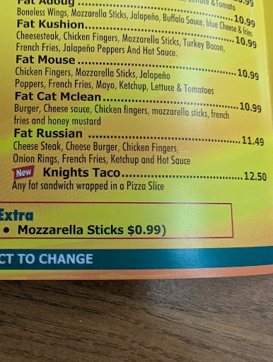 Knights Express is a small pizzeria on Easton Avenue closer to Tacoria, Paulie's Pizza and what was the NJ Book Store. Parking at this establishment isn't very convenient, as it is street parking and Easton Ave at this section is usually very busy. The interior itself has a decent amount of room for sitting at normal sized tables, which have the Rutgers Knight carved into them (a nice touch). There is a very good drink selection and another positive for this pizzeria is that it's open earlier than nearly every other pizzeria on Easton Avenue. You can purchase breakfast at this pizzeria if you wanted, which is a nice convenience. There's also an ATM inside.