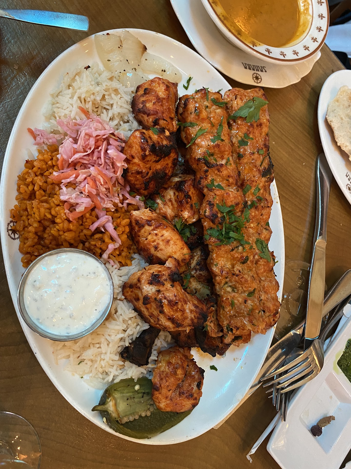 Read moreOMGGGGG IS ALL I CAN SAY!!! We called last minute because we didn’t realize every place would be booked for Easter since we always host it but this year we decided to be stress free. A gentleman over the phone said they could sit us right away which was perfect timing since it starts getting busy later in the night for iftar. We got there and were able to accommodate our big party of 6 adults and 3 kids upstairs (perfect for us, since we have toddlers and as you know, they are unpredictable, loud, messy hehe) . Our waiter came to offer and explain “family buffet menu” which is what we went with ultimately. They brought out AMAZING APPS, a bunch of dips, spicy delicious shrimp, 2 types of salads, pita bread, juice, olives, etc…from just that we were so satisfied and could not imagine the entrée. Later on they brought a variety of seafood and meat, A LOT OF IT, to the point all 3 families walked out with leftovers packed. We asked for the bill and our awesome waiter, said not, yet…we are bringing out dessert and coffee!, we said, that’s included? OF COURSE! Baklava and a white looking flan. My mother who is very particular about customer service and food was AMAZEDDDDDDD and said she will definitely be back again with her friends. Not just the food but customer service was amazing. A Young lady, who I am assuming is a waitress there, heard one of our toddlers cry and she came upstairs and very friendly interacted with him giving him high fives, and talking which she calmed him down and made him smile, a big win for us! LOL… Besides this amazing experience, we ended up paying $130 (tip included) per couple, which is UNHEARD of nowadays for GREAT FOOD, great service, and we took food home. DEFINITLY WILL BE BACK AND RECOMMEND THIS PLACE! Great job Sahara Team, you...