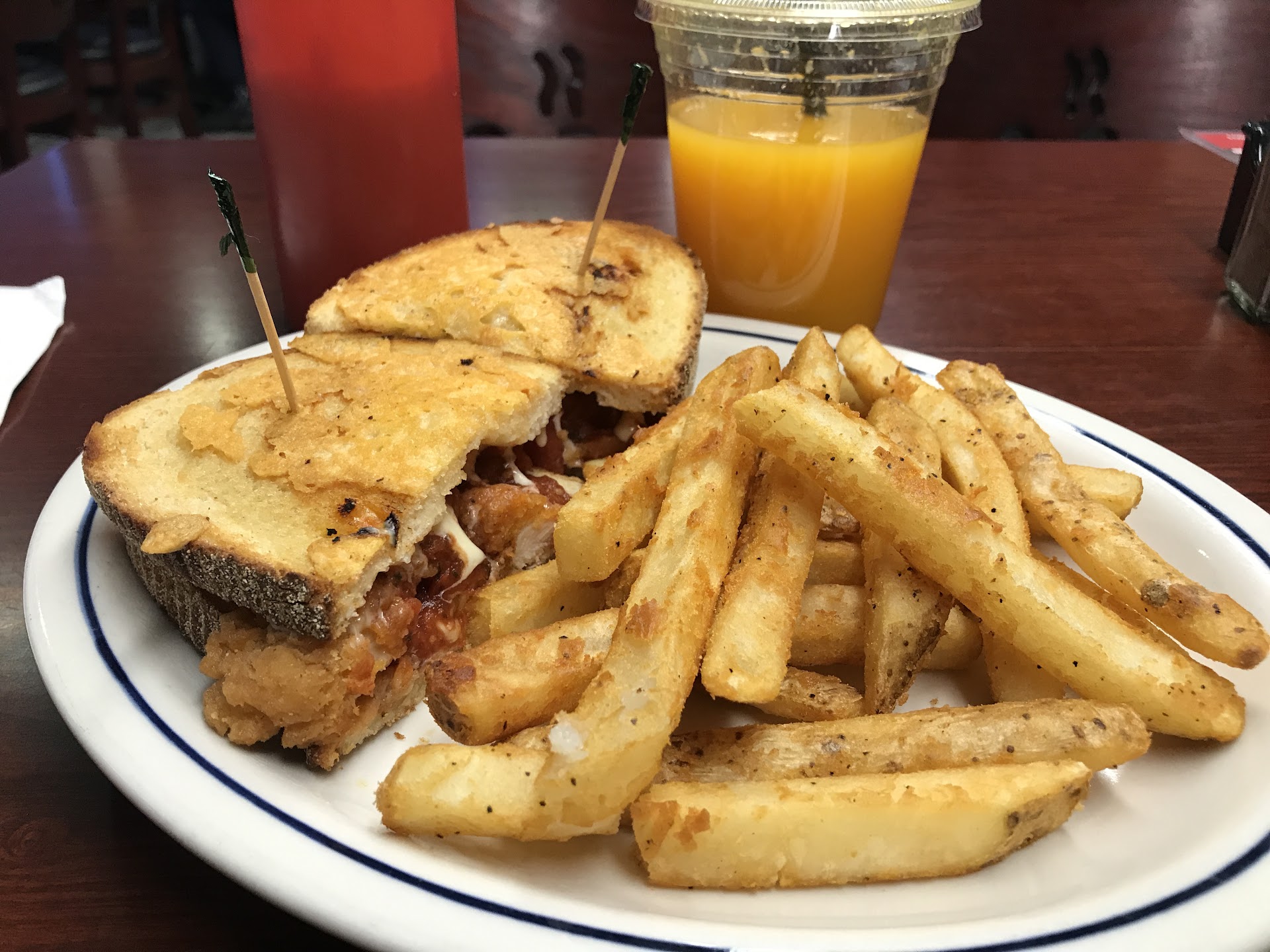 Read moreThis is an excellent family-owned restaurant with fantastic food and friendly service. You will always be greeted immediately and with a wide smile upon walking in. I have had the sandwiches, crepes, pancakes, and omelets and every dish tastes amazing and fresh. Their orange juice is hand-squeezed fresh daily and tastes like you’re biting into a perfectly ripe orange. Their fries are lightly breaded to give a good crisp but still have a hearty potato taste. Onion rings are real and whole, not onion paste you find at a lot of nearby restaurants. Dish presentation is definitely a main focus as well. I was initially surprised when I saw their chicken parm sandwich is not on a hero/sub roll like at other places, but their panini-style take on the classic sandwich is a new favorite of mine. I will add more photos...