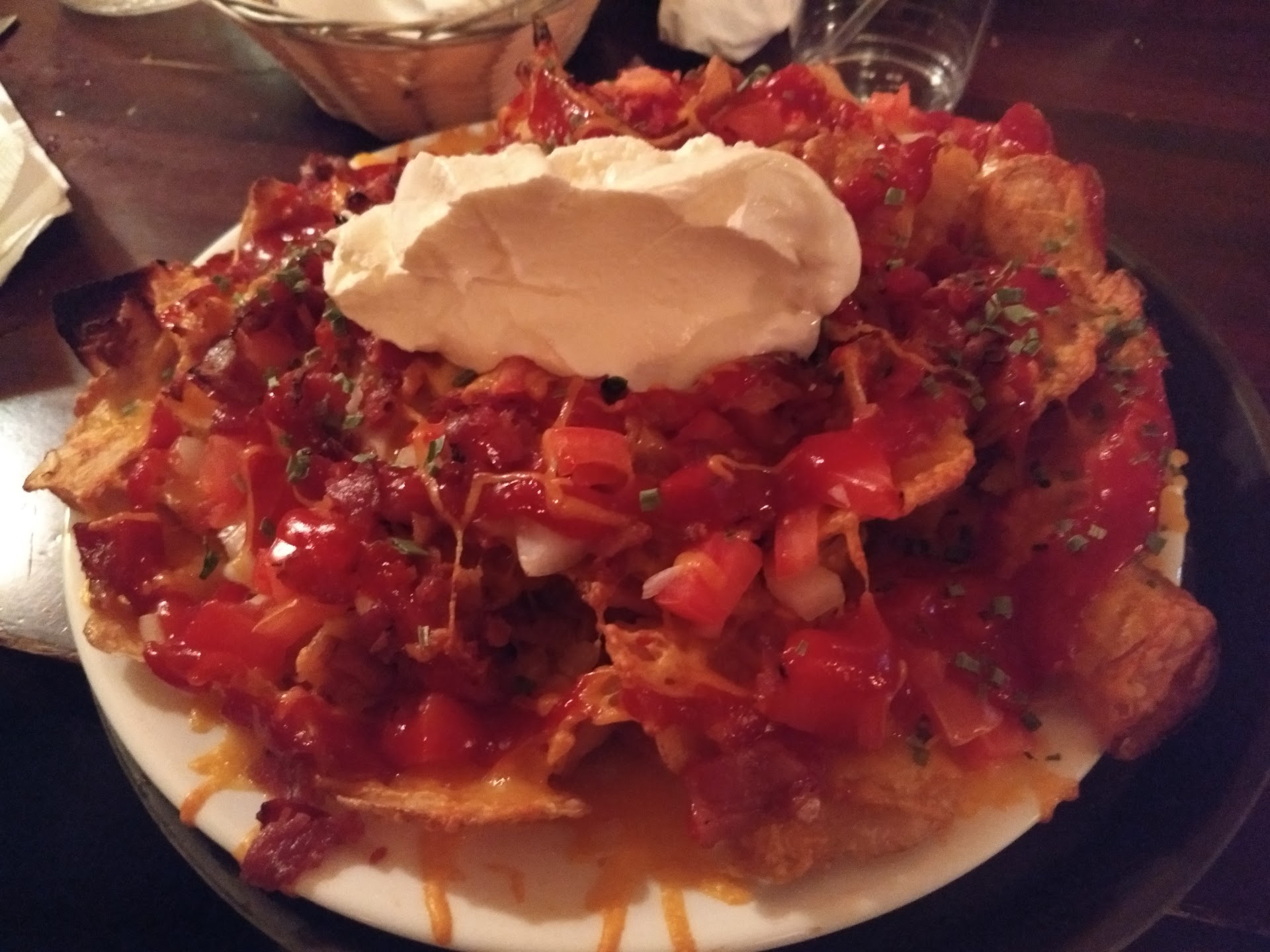 Read more2nd time: Got the potachos. These are amazing. Think if you could combine french fries and potatoes into one crunchy mess of goodness. The potato chips are thicker than regular potato chips and have a greasier texture to them. Then the bacon, cheddar, onions, chives, and tomatoes are covered on top. Oh and don't forget the sour cream which adds a nice smoothness to the flavors. But the best part was the drizzled ketchup on top. Ketchup makes any form of potato better. The combination of sour cream and ketchup goes perfectly together with a bite of potato. Good portion for the potacho. Service was good.
