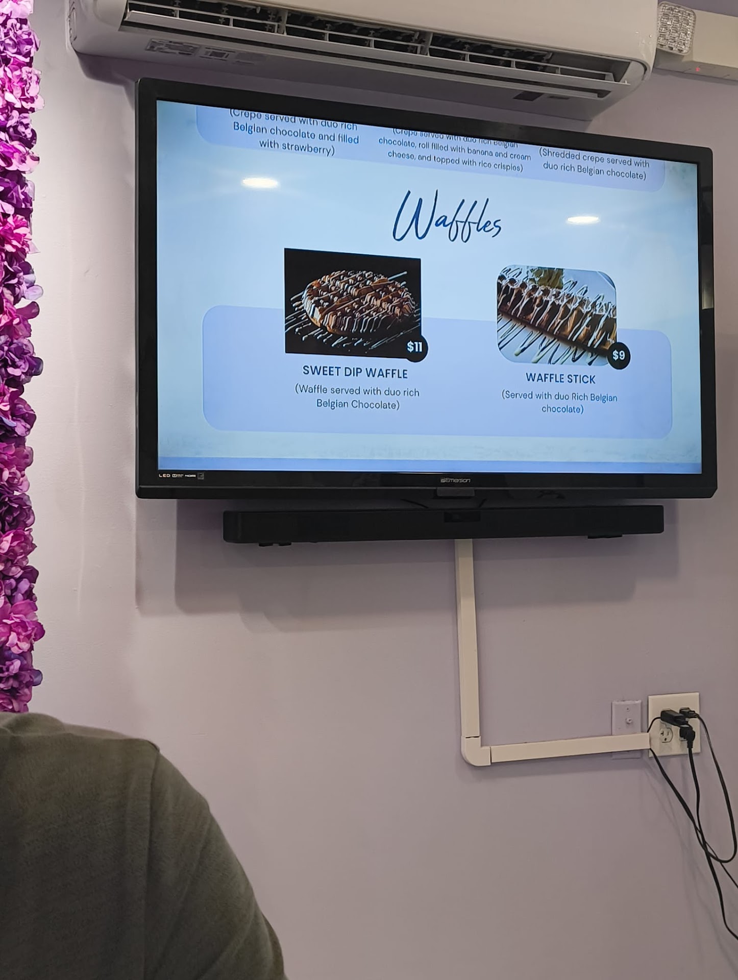 In fact, the picture on the TV in your store shows a full, round waffle, which contributed to my expectation. If you serve half a waffle, that should be made much clearer.
