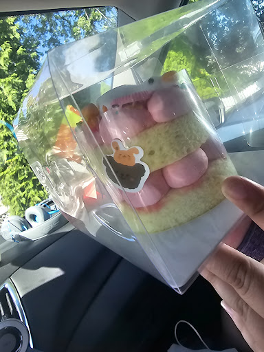 We saw this bakery over the weekend when we were going to go to The Stray Dog. My daughter and I decided to go try it yesterday, and we are so glad we did. 10/10 definitely recommend, and we will be going back. I got a strawberry banana smoothie, and it was so good, my daughter got the mango smoothie, and she loved it. The drinks come in cute cups with panda head lid, the paw on the back is for closing the straw hole. We got the macroon box, chocolate crepe cake, a dinosaur cookie, fruit tiramisu, and strawberry goose cake. Everything was so good and delicious. The inside is just so cute and inviting. Can't wait to go back. The owner is who we think was working behind the counter, and she was very nice...