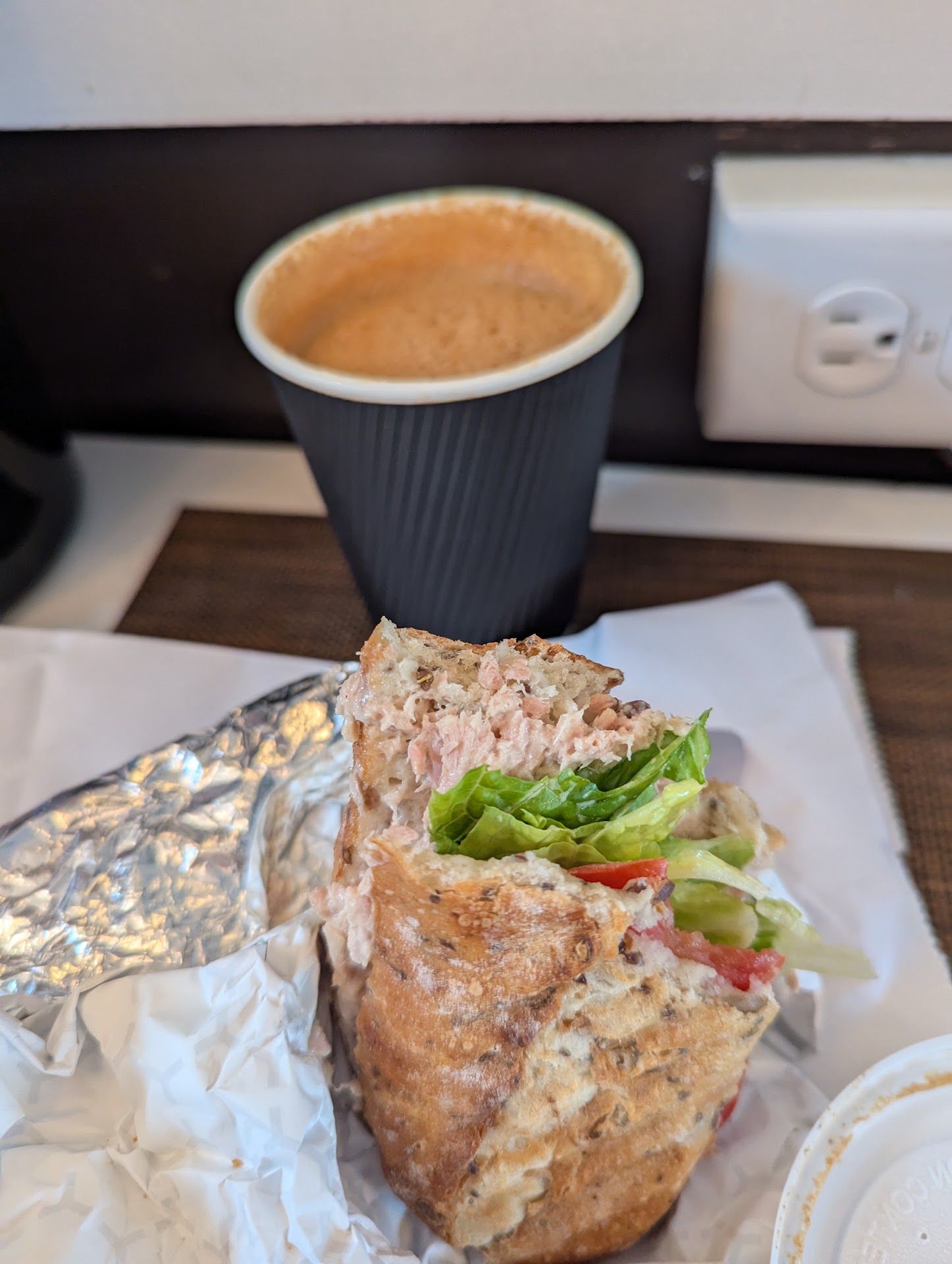 Read moreMy 2nd time here but the 1st time, I didn't like the coffee & because they don't have so much options, so this time, I went somewhere else to buy it. Anyway, after almost an hour roaming around undecided where to eat (because I'm not from the area), I finally decided to grab some Tuna Panini. I'm glad I did cuz it's the best Tuna Sandwich I've ever had -- the multigrain bread was crunchy & the proportion of tuna to the bread & salad was spot on, not too much mayo which I really love...unlike other Tuna Sandwiches I had in the past where the filling is dripping while you take a bite on it. The only thing though is that they haven't updated their pricing either online or the menu. It is stated that it's $13.95 online while $14.95 on their menu, that's why I was quite surprised when I had to pay $17 (with tax but excluding the tip). Other than that,...