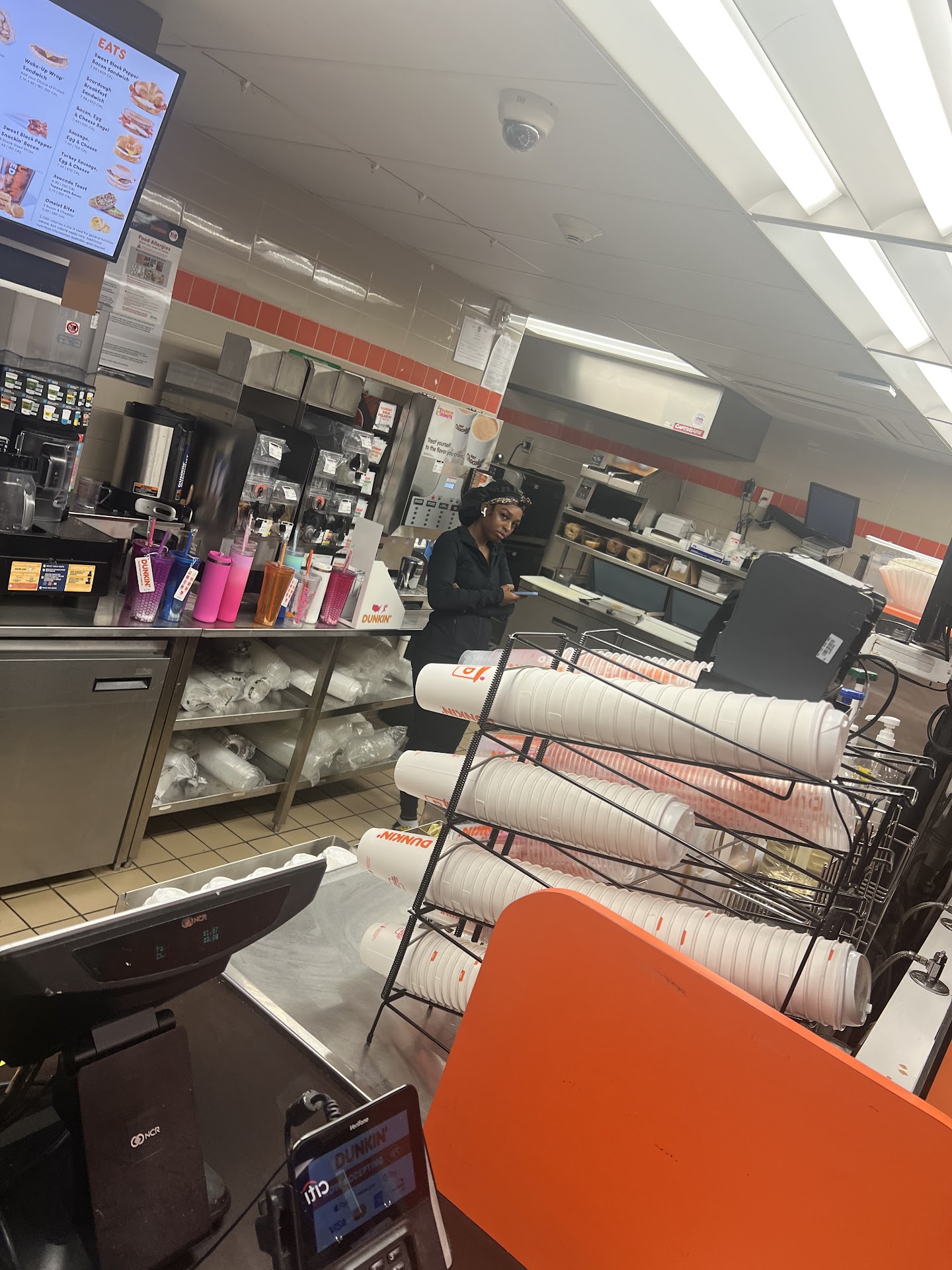 Read moreI stopped To get a cup of Coffee on 1/223 and all 3 employees were sitting down playing On their phones. I waited 2 minutes and no employee recognized me. I asked a patron if anyone was working here and 1 of the 3 sitting down must have heard me.. al 3 approached the counter and asked If it looked like anyone was working here to which I replied No . I was tolld to go to the next Dunkin’ because I was not Getting...