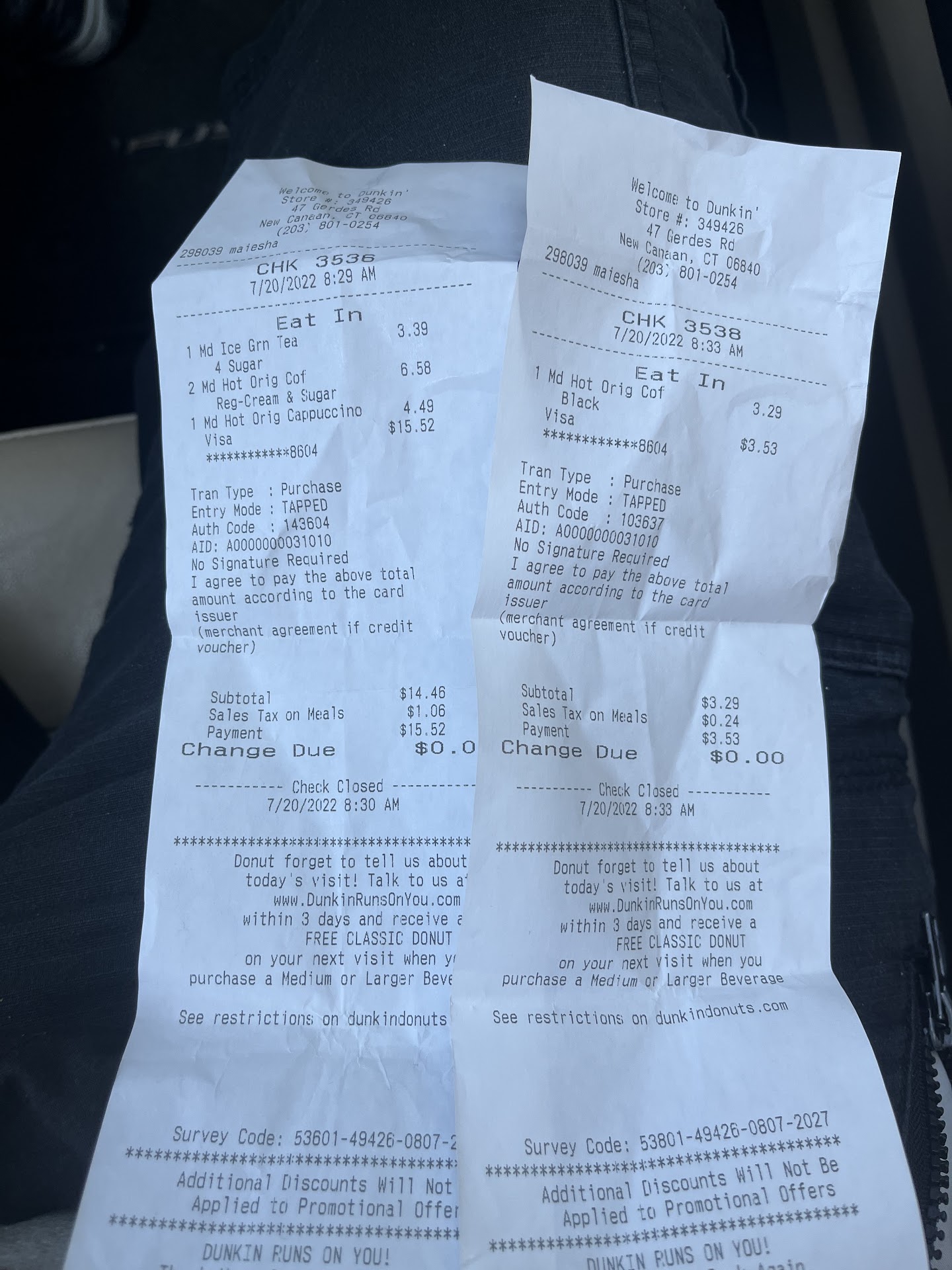Read moreMy family and I just got coffee because the machine for latte or cappuccinos was out of order but terrible customer service the 2 ladies were too busy on their phones and own conversations. One of the girls was so rude that to me because I didn’t see the sign saying that the machine was not working she said can’t you read the big sign and I lough and said I’m sorry I don’t have my glasses my bad. Honestly the worst service I have ever experienced at a dunken...
