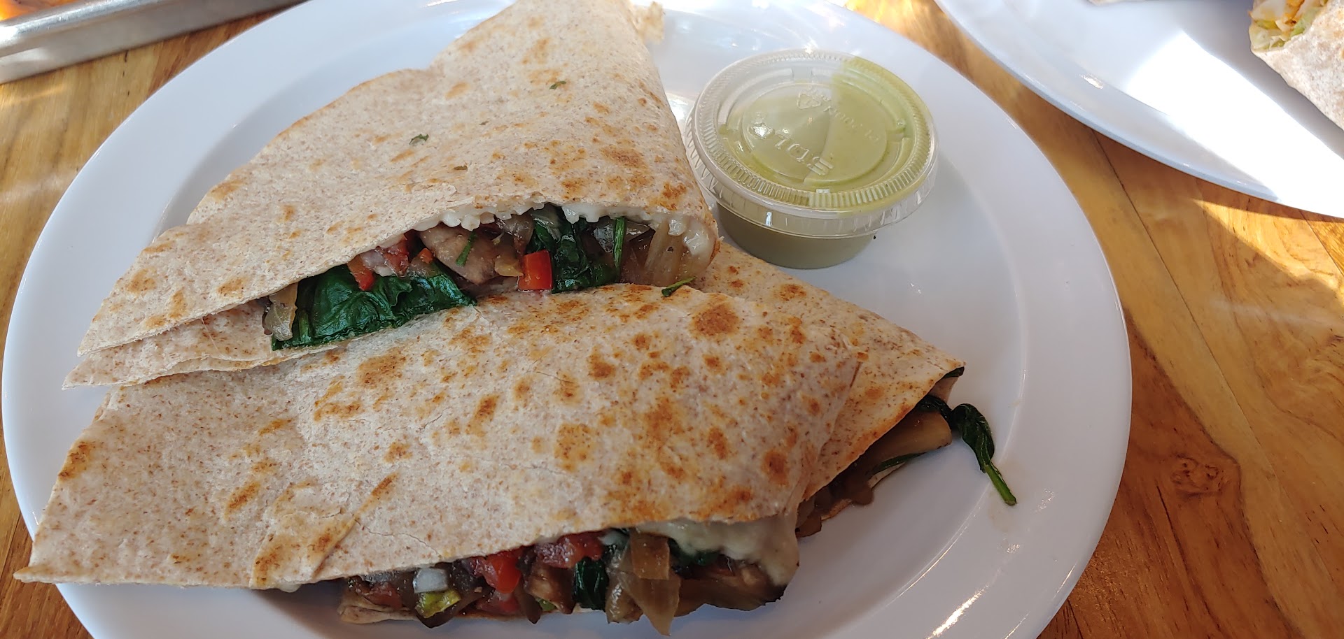 Read moreCame here twice and the experience was pretty good. The food and coffee tasted yummy, but the barista botched the milk on my latte. It was foamed so much that it came out closer to a dry cappuccino and the milk was poorly incorporated w/ tons of large bubbles on top, which is indicative of poor steaming techniques. On the other hand, they at least use high quality plant based milks (somewhere else in town uses extremely cheap and poor quality milks that just ruin milk-based drinks). We also asked for all our food and drinks for here and it was all made to go, not a big deal but kind of a bummer. And lastly the tofu scramble wrap was very good but if you’re going to cut it in half I recommend cutting the wrapper in half too. I didn’t realize it was cut in half and unfolded the top of the wrapper to eat it and when I got to the middle where it was cut in half it got so messy and difficult to eat. It was just awkward to eat it that way. Not a big deal but it would have been more convenient to just have two halves instead of it being wrapped as one big thing. Aside from these minor things, the staff were nice, the space was clean, and...