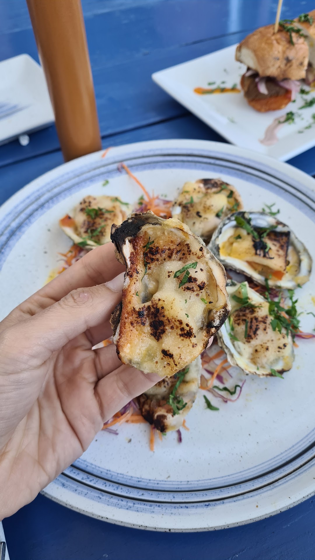 Atmosphere: this place looks great and has fun interior: gives off young, beach, fun. Weird that they play jazz/classical covers of songs, it makes the place feel very unnecessarily formal. I think they could figure out an identity (fun, formal, casual), and edit the menu to match.