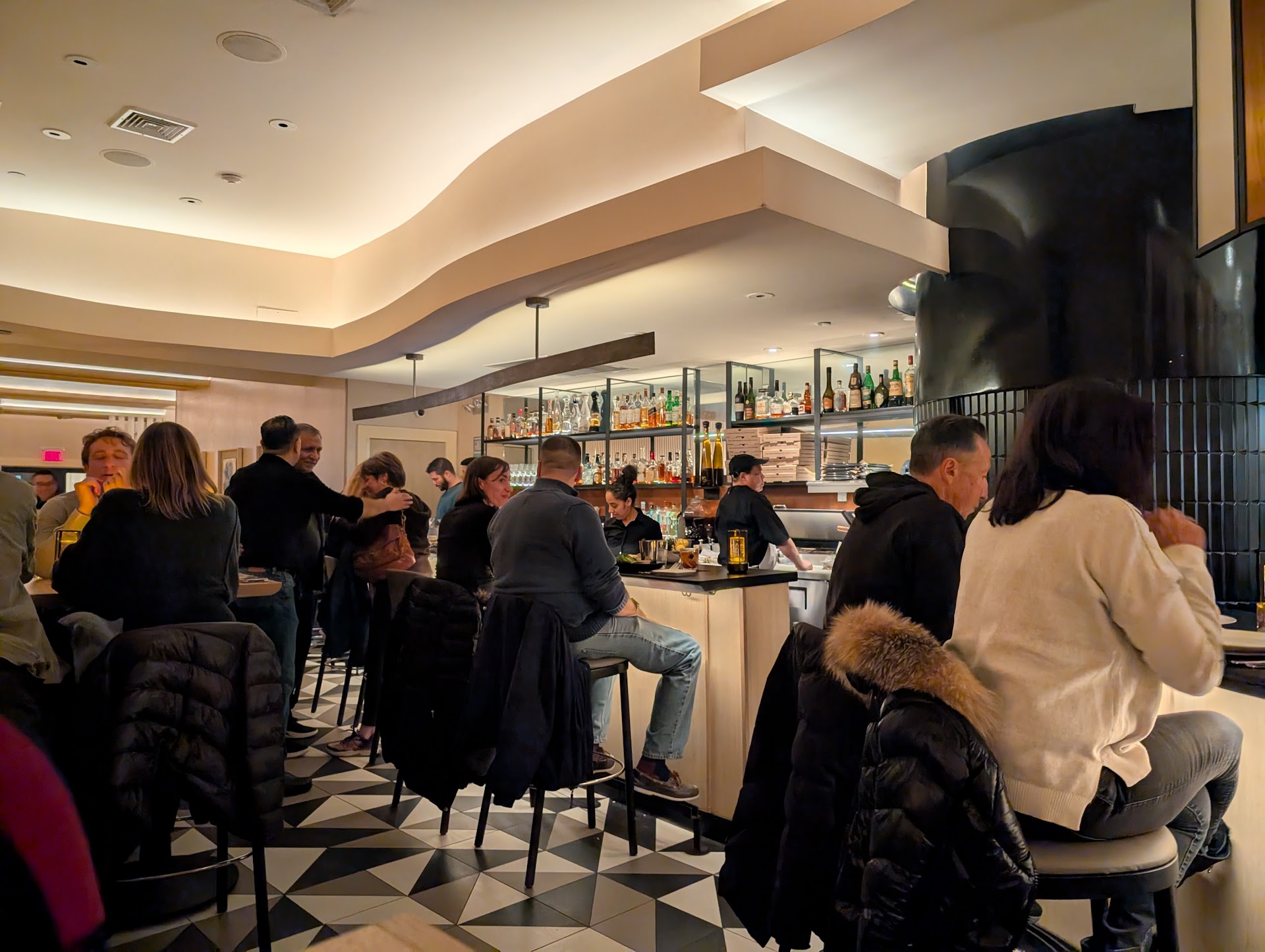 Read moreThe food was ok. The seating was absurd. I found a photo of my table online. The place was packed, so every time a waiter, busboy/girl, or patron tried to squeeze between my chair and the bar crowd, they hit my chair. At one point, there was a wall of people standing within 2 feet of my wife and I. Being bumped into every 30 seconds was pretty annoying. Maybe some people are okay with that, but I go out to dinner to...
