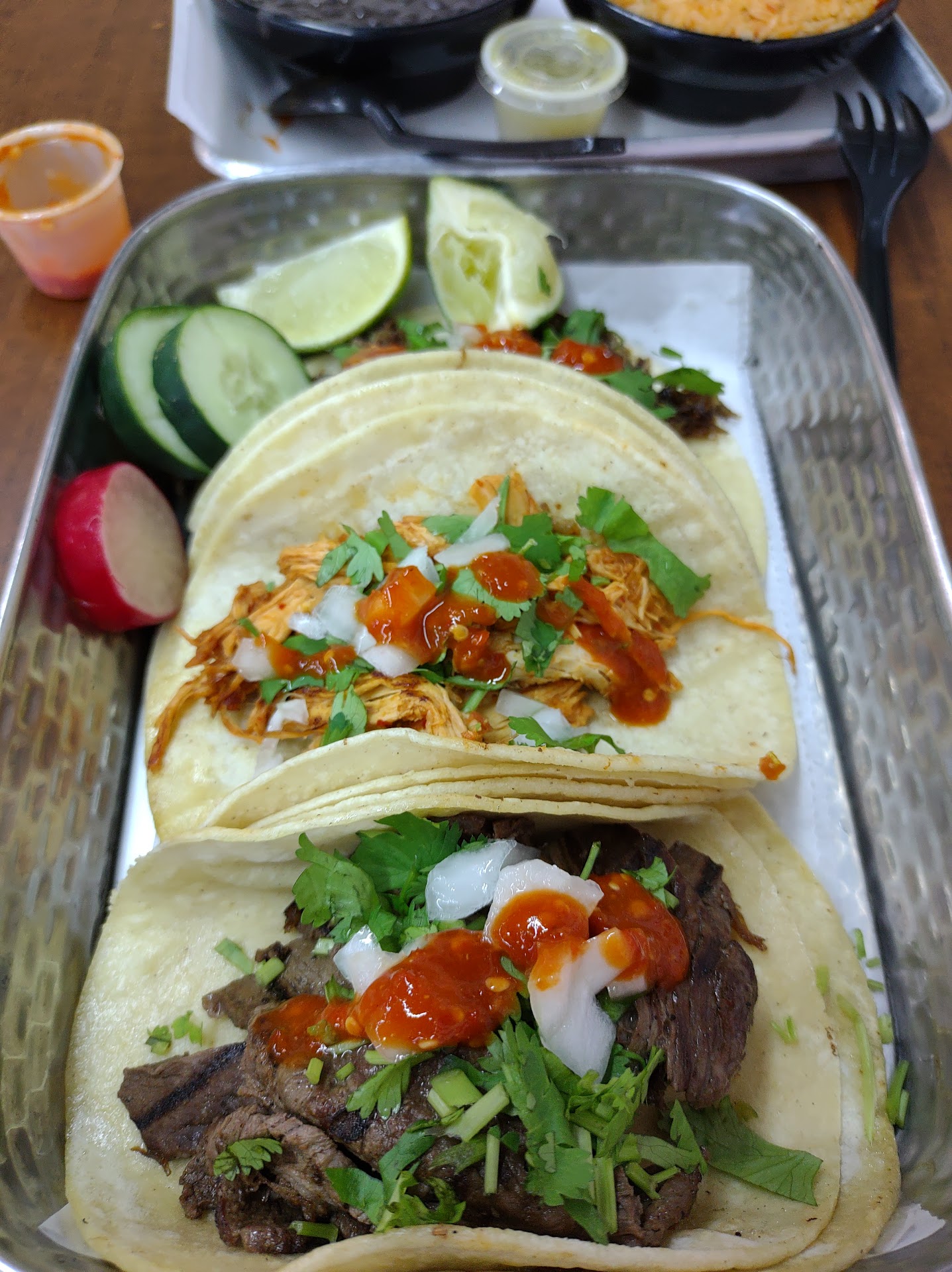 I had 1 carnitas and 1 chorizo taco w/a Mexican Coke. Both tacos were fantastic. My wife was in LOVE with the chicken mole. I'm also very rarely a fan of rice but theirs was spot on and I enjoyed it a lot.