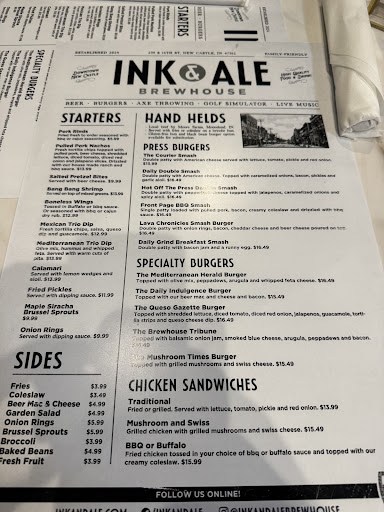 Read moreWhat a pleasant surprise tonight!! The hubs and I were looking for a place to eat around 2200 (10 p.m) as we are night shifters and tend to eat a late dinner. We found Ink and Ale to be open until midnight AND an open kitchen until close đđ we arrived and were very pleasantly surprised to see acoustic live music under way!! Just loved it! The atmosphere was great and the food was VERY good! Our server, along with the manager (Jodha) were fun to chat with and very helpful with anything we were needing. Our other visits were during the early evening hours and were just as pleasant. We definitely appreciate having a nice place to go late in the evening without making a trip to Hamilton Towne Center for a nice experience. Nice job, Ink and Ale đș đ now, on a suggestion note....... I love key lime pie martinis along with blueberry martinis. It was a smidge disappointing that you do not serve those drinks. I totally understand it is a licensing thing. All the best to you and...