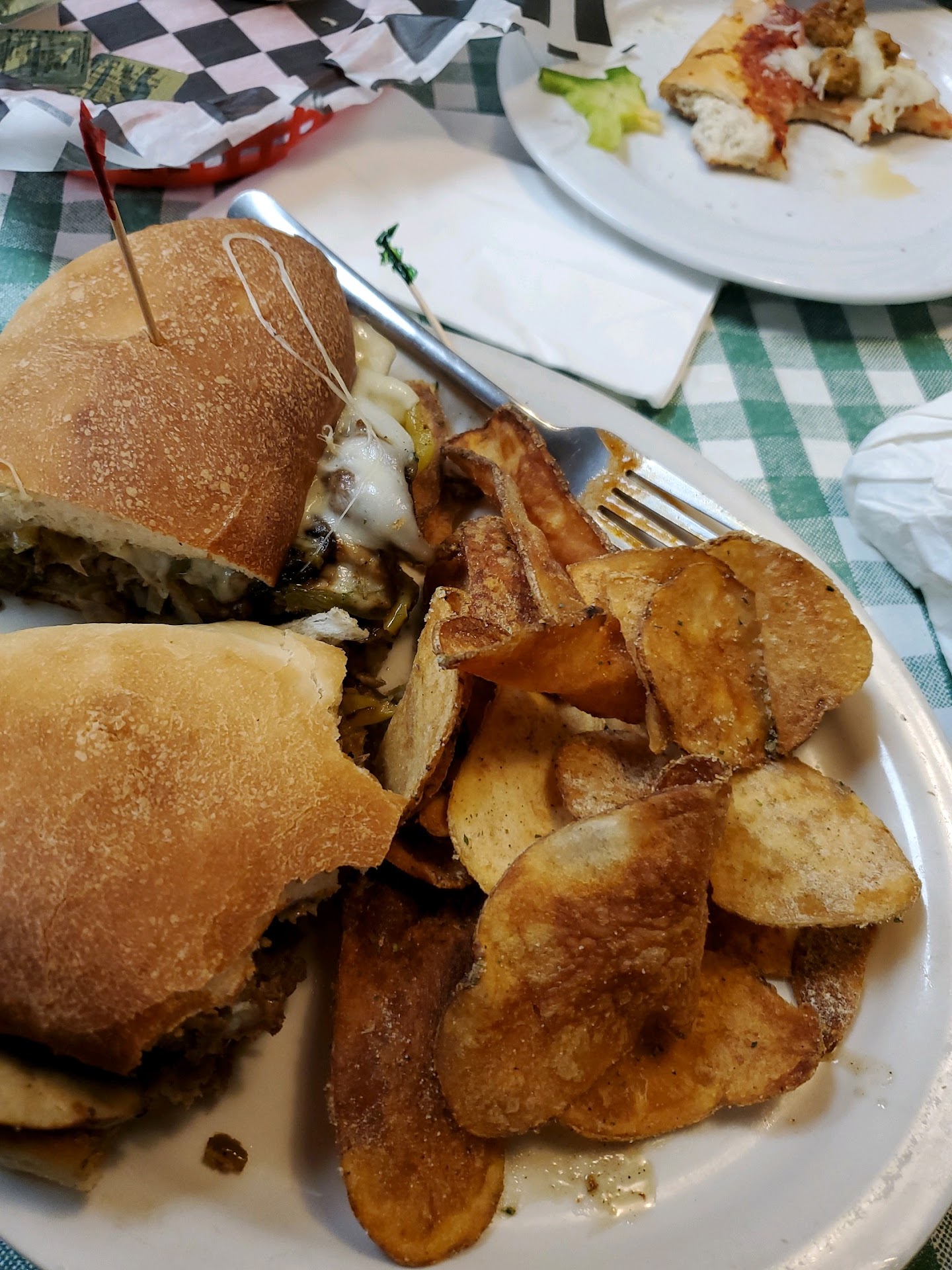 Always great food and Sandy is always cheerful and great smile. I have lower back problems and the seats are so soft I sink in and can't straighten my back its hard to sit. So I usually have things delivered either way it's the taste or the dough and sauce but the sandwiches are really good the size of the wings is Alot larger then other pizza shops Pauly and his family are great Mike is my brother in law and his family were over a lot everyone of them would make me laugh because of their great personalities they seemed always up beat.I love the calzones and I like to get them filled with as much toppings as I can afford at that moment although the prices have always been great. A lady in my building love the buns and sliced of bread they add to certian menu items she saus she's love fried peppers and egg sandwiches with the bread. You guys do a great job my mom and dad love it also thanks for treating...