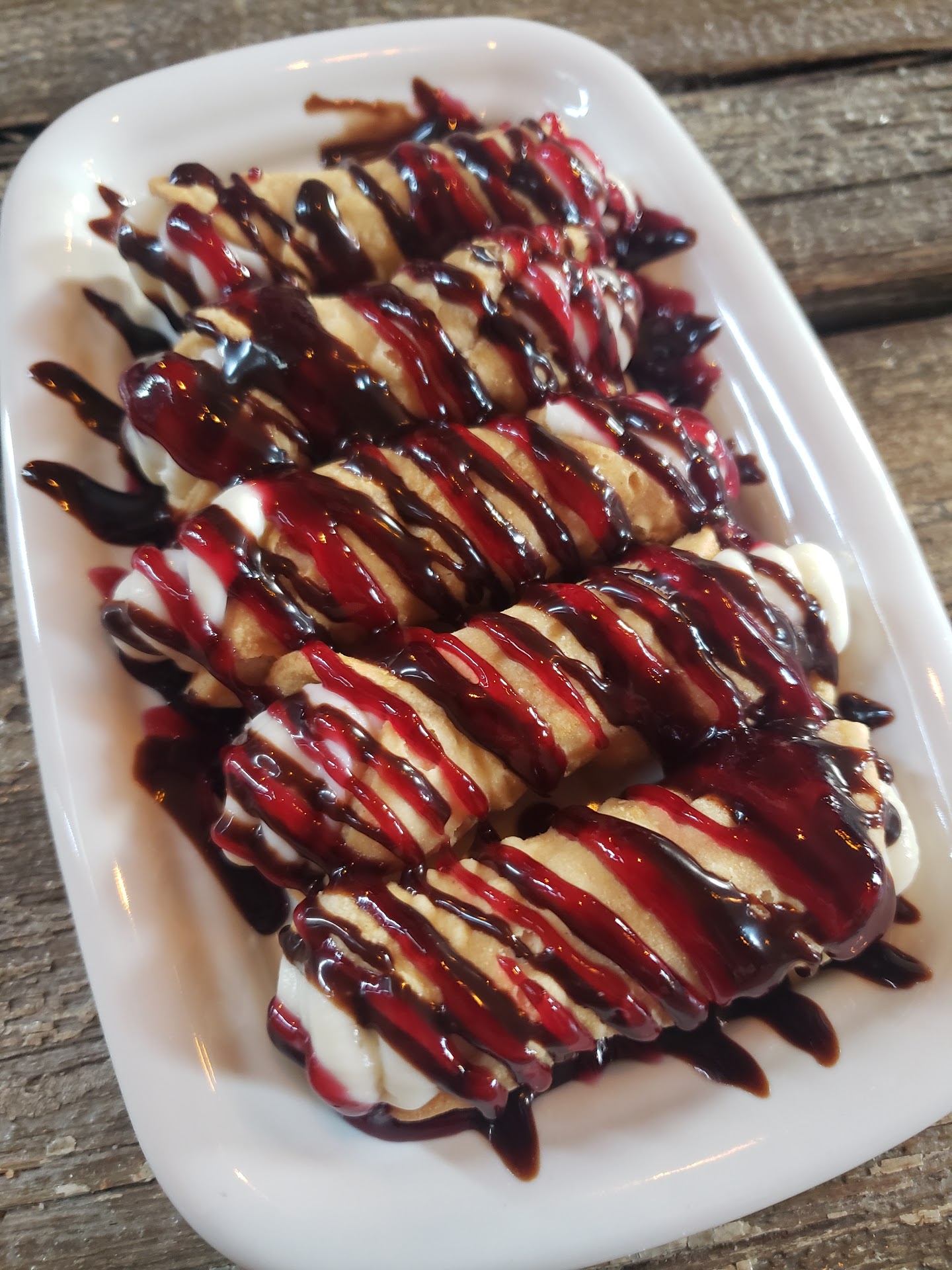 We came here for dinner, got a bottle of sweet wine that we enjoyed. Got the zucchini flower appetizersthat we liked with the large fresh mint and basil . We both got a gondola, his a meatball and I a lazy lasagna and again loved the fresh mint and basil. I personally like more cheese, but the interesting scissors to cut it I found interesting. Got some cannoli for dessert we shared that it wasn't bad. It's a cute place in a place you would not look for. I dressed up and only needed confy shoes and clothes, had a hard time with the gravel parking lot. I will be back the staff was nice and helped us out after our reservation did...