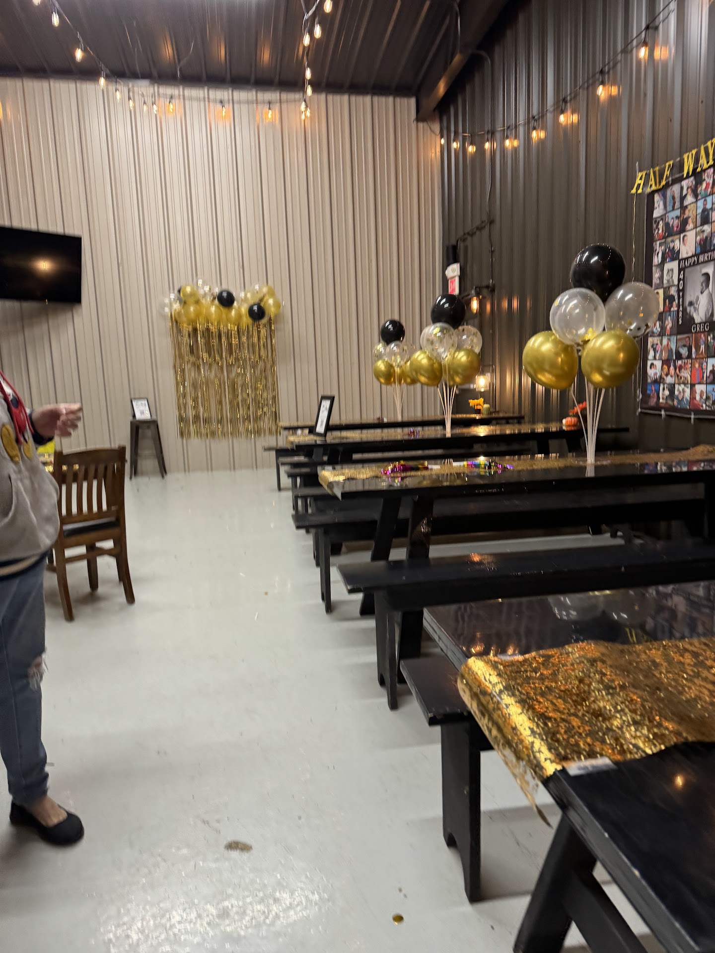 The space itself has a very cool vibe. It's kind of industrial with bistro lights strung from the ceiling. When I inquired about the space, I actually got to see it before they'd made some small improvements and I have to say those small improvements made a huge difference! The space is perfect for a gathering of our size and we were able to decorate it in a way that worked really well with the aesthetic. As previously mentioned, they have house TVs and speakers that they allow guests to use for music, slideshows, videos, etc.