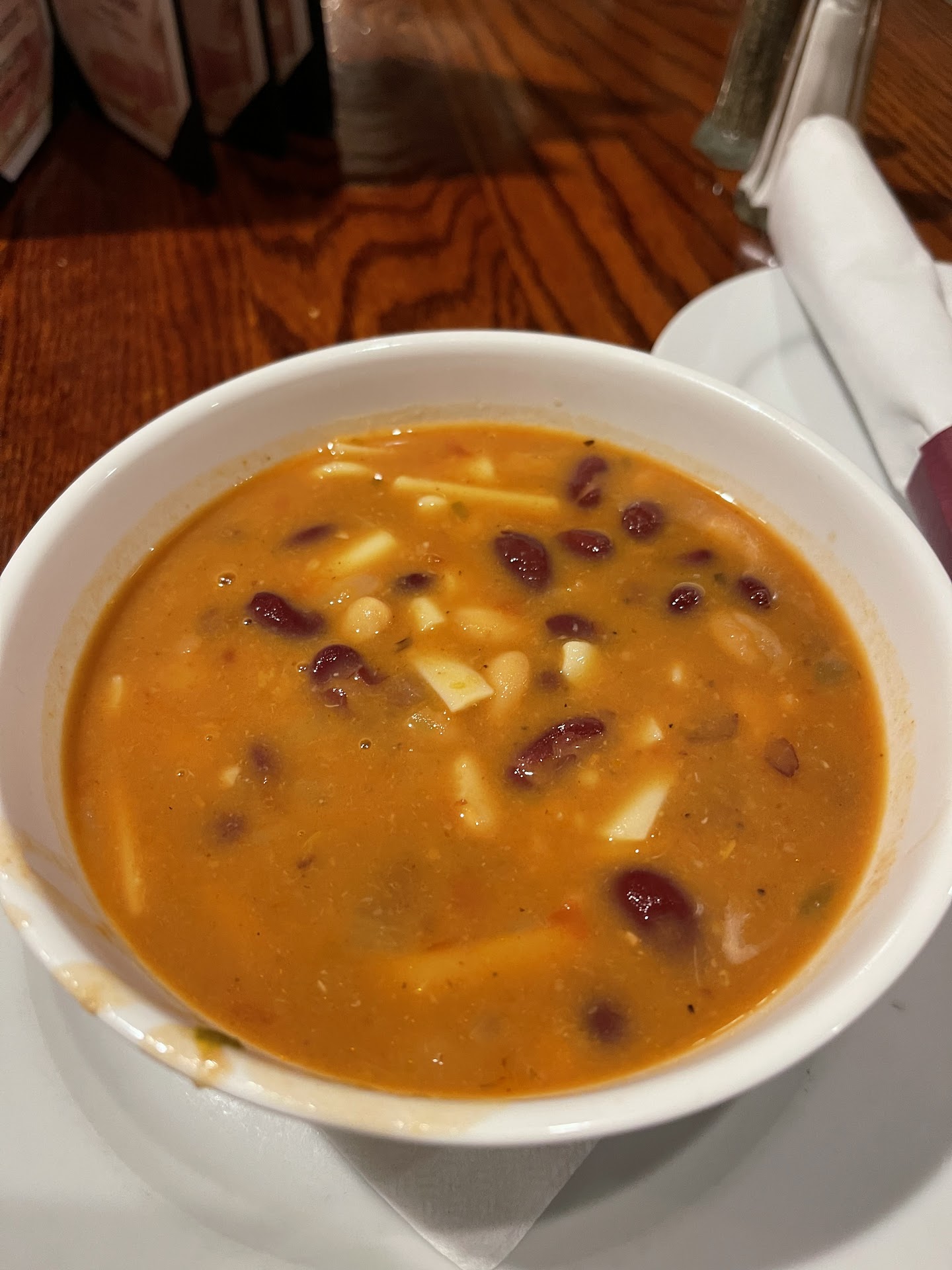 Of course as always, we started with the magnificent Pasta & Fagioli Soup in a delectable, delicious broth. Today's chef made the impressive Coppino Amalfitana with clams, mussels, shrimp, & calamari sauteed in a white garlic sauce over linguine. It was absolutely incredible with all fresh ingredients. The Linguini Con Vongole Clam sauce was perfectly sauteed in an impressive, white garlic sauce chock-full of tender clams. We also had a side order of spinach and garlic.