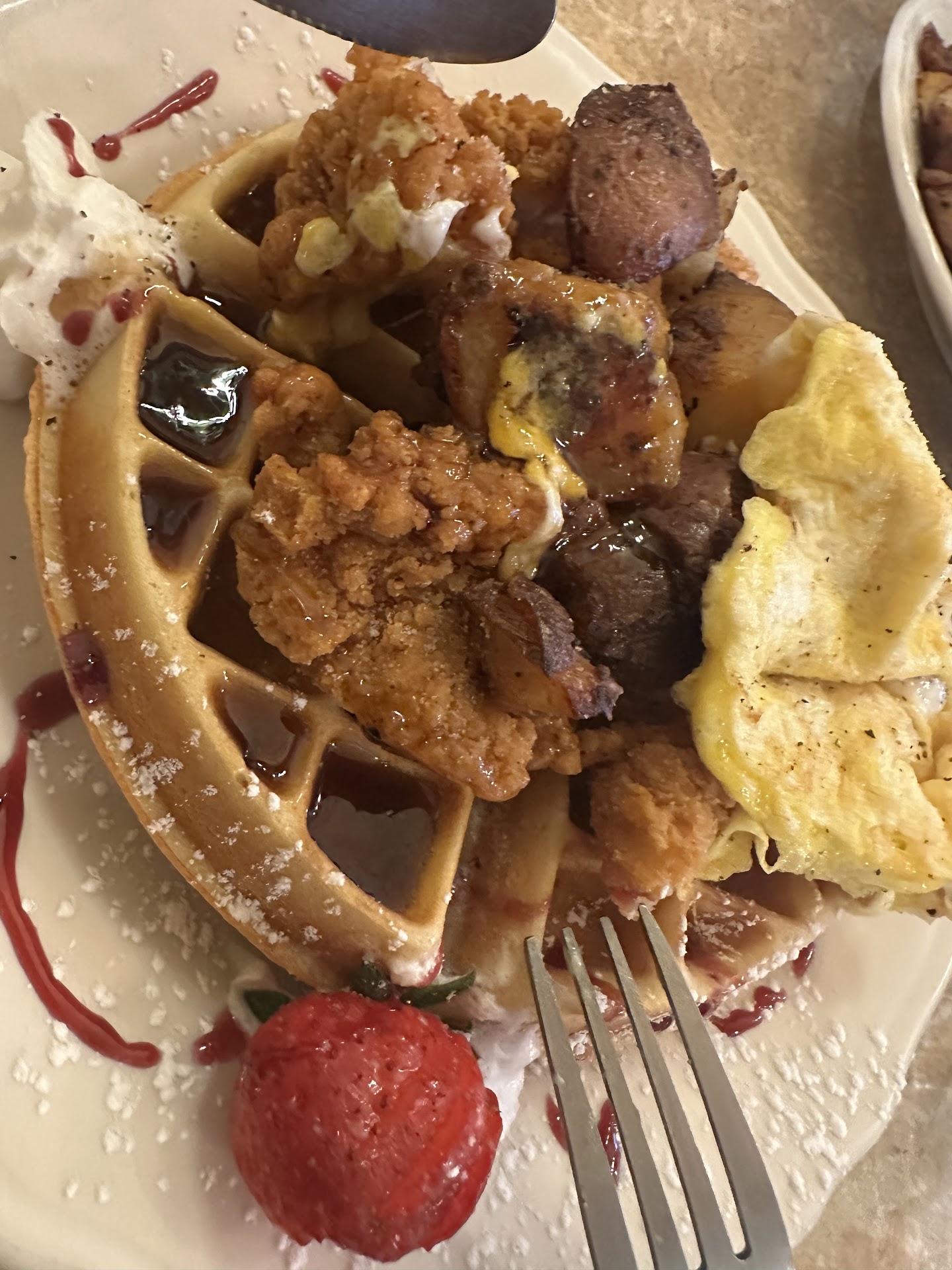 Read moreWe live an hour from New Haven, so I was excited to try a new restaurant in the city. We did a google search and decided on Chaps Grille for breakfast. We walked in and were sat at a wobbly table. The waitress clearly noticed how unbalanced it was but didn’t care to address it. After she took our drink order we slid to the next table down. They had the door propped open and it was cold and windy. Everyone inside was wearing their jacket, you’d think the staff would notice customers weren’t comfortable and close it, but no. So we kept our jackets on. I’ve never had fried chicken and waffles and was excited to see it on the menu. I chose that. My fiancé chose Chap’s omelette. I had ordered an OJ and he ordered a chocolate milk. The drinks were bottled and served without glasses. When the food arrived I was excited to dig in, it looked great. I ate the eggs off the top first, delicious. Everything went down hill from there. The chicken was clearly store bought frozen fried chicken, cooked to the point of being rock hard, with poor flavor. I took one bite. The Belgium waffle was soft, lacking the crisp edges you hope for in a waffle and tasted like white bread, no sweetness at all. Terrible! The home fries were good, I got about four of them. The dish was a total let down. My finance enjoyed his omelette and offered to share with me, I agree his dish was tasty. When the waitress came over we requested our check and a box. She brought over the check along with a barcode for us to leave a review. We decided maybe we shouldn’t do a review as our experience wasn’t great. My fiancé paid cash and placed it right in the check holder. We headed to our car. The waitress then followed us outside and accused us of not paying. My fiancé said “we paid cash, it’s in the check holder..”. She walked over and grabbed the check holder and said “oh, thank you.” .. not “sorry” or “my mistake”. I then walked back in and scanned the barcode to leave a review. We obviously...