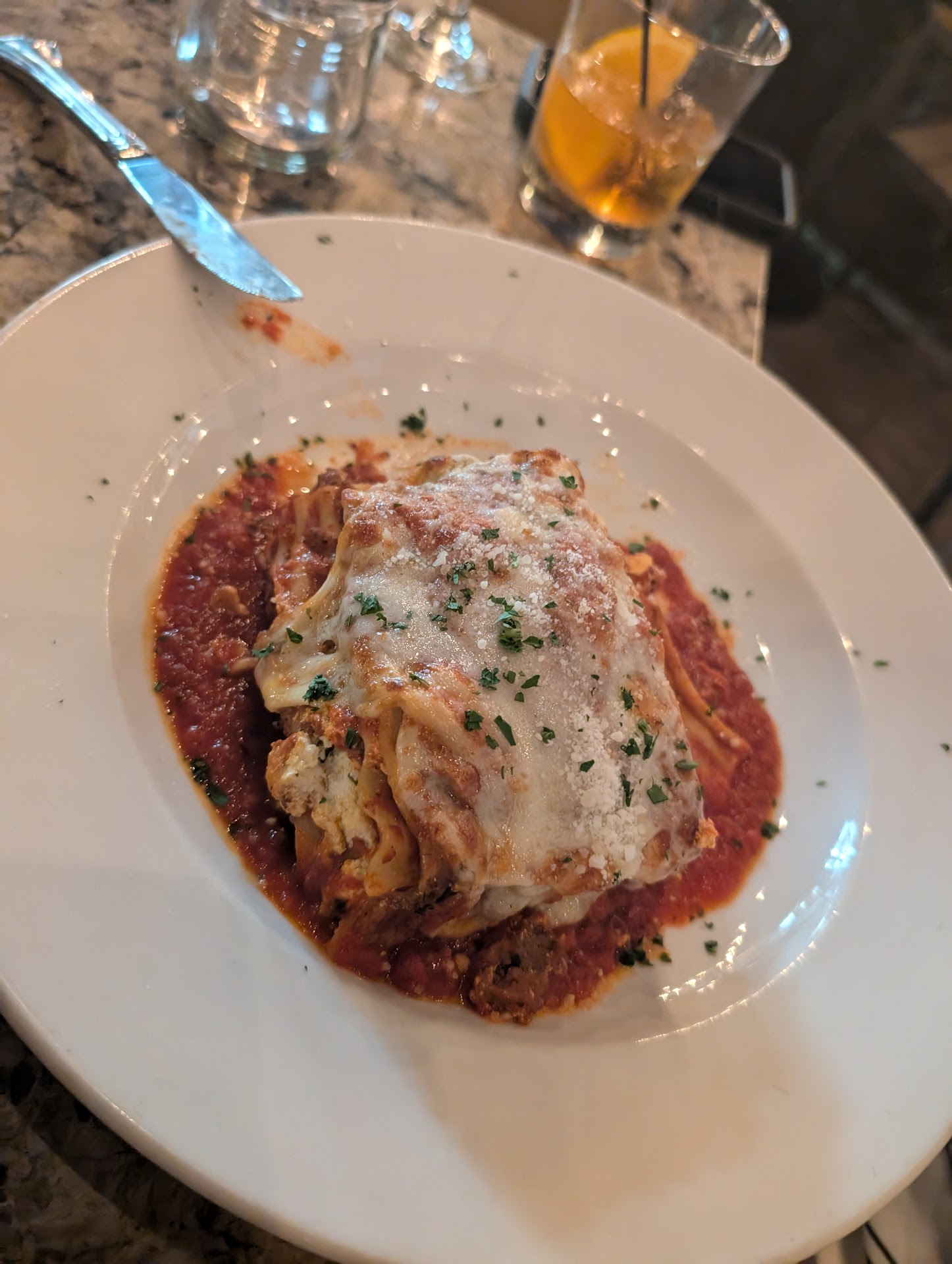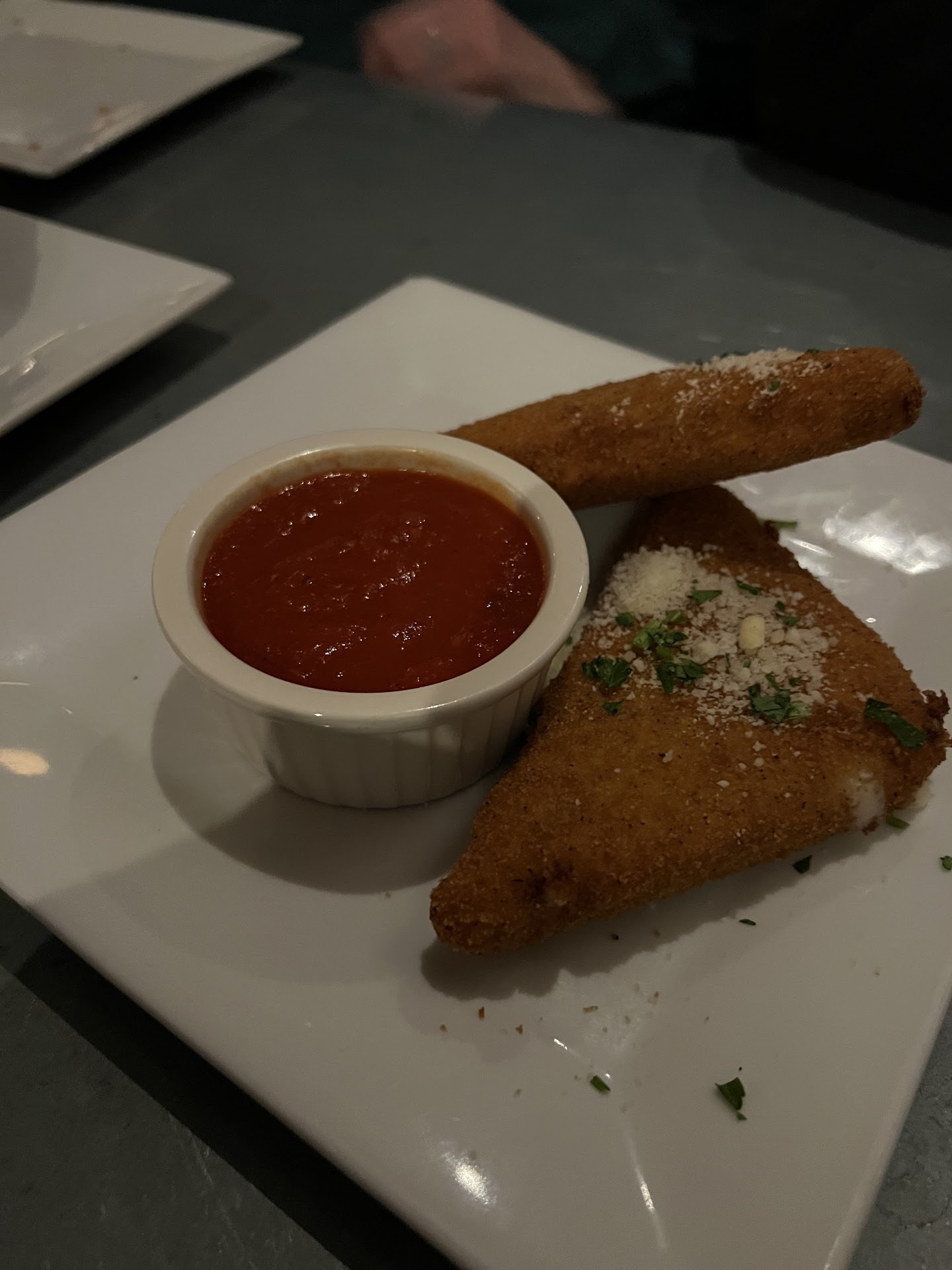 The FOOD? Chefâs kiss. My partner and I ordered the Arancini to start. If youâre not familiar with this dish, theyâre fried risotto balls filled with mozzarella cheese and bolognese (slow-cooked pasta sauce with ground beef), sprinkled with parmesan cheese. This was the best starter Iâve ever had. The outside was fried very well. The crust was thick enough to appreciate but thin enough to be able to cut through with my fork. They are decently-sized, and they are very filling.