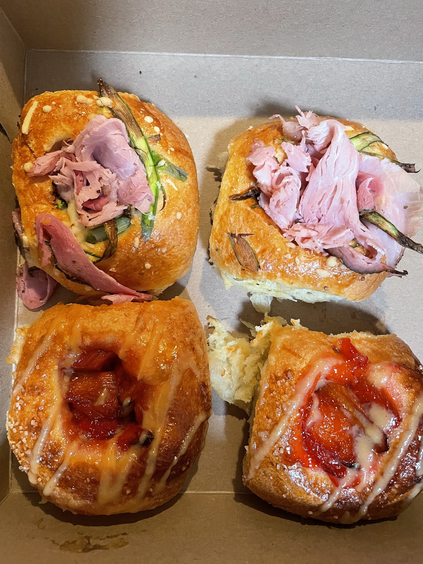 The kolaches which I learned are Czech pastries (after we devoured them immediately) were absolutely amazing! We tried the ham and asparagus and strawberry rhubarb- both outstanding. The pastry is airy and light, not overly sweet. The savory kolache was fantastic! Both were outstanding and our first thought was - have to go back tomorrow! :)
