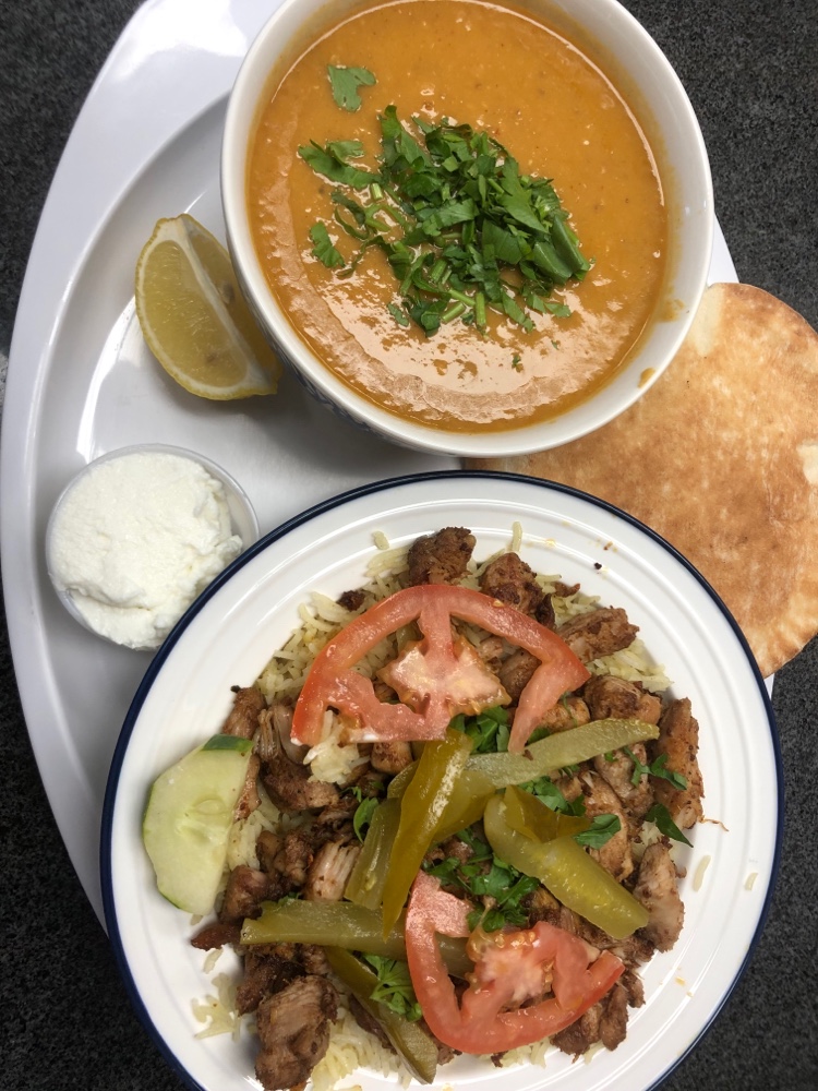 The chicken kabaob was delicious, seasoned wonderfully, with mujadara, which was also delicious. Hummus super creamy, l don't know what they are doing to make it so delicious but best food I've had in a long time and very reasonably priced.