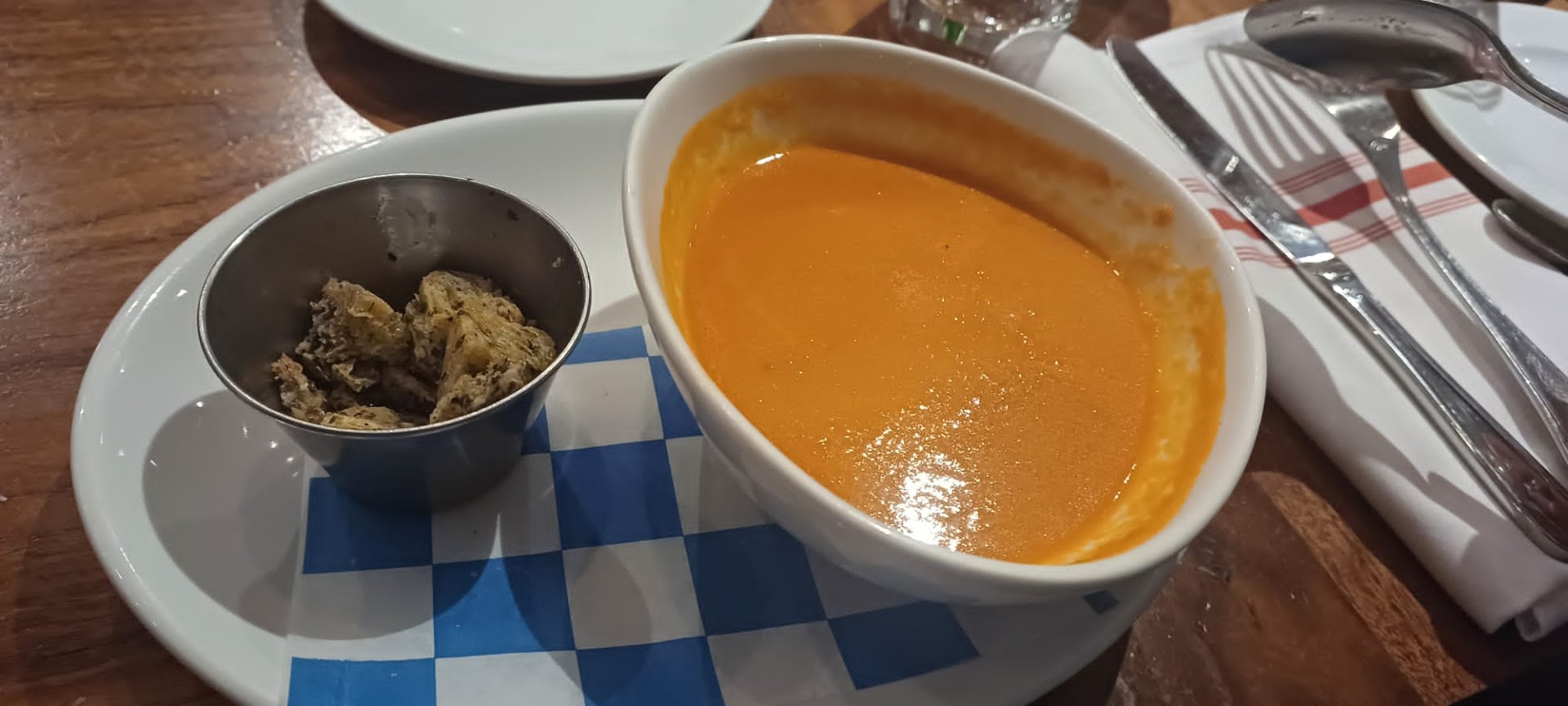 This restaurant is a true culinary gem. The ambiance is an experience in itself: elegance blends with a welcoming and surprisingly tranquil atmosphere, ideal for a relaxing evening. The soft lighting creates an intimate aura, while the carefully selected background music accompanies the conversation without ever overpowering it. For sports enthusiasts, discreetly placed TVs offer the possibility to follow major events, without disturbing the overall atmosphere. The service is impeccable: the waiters demonstrate a rare attention to customers' needs, anticipating every desire with courtesy and professionalism. The menu is a real journey through unique and refined flavors, where each dish is a work of art. To start, we opted for a tomato soup and a ricotta flan. I confess I initially had some doubts about the apparent simplicity of these choices, but I was quickly proven wrong by their extraordinary goodness. The tomato soup, velvety and juicy, had a perfect texture and an intense flavor that won me over at the first taste. The ricotta flan, on the other hand, was a real explosion of flavor: the delicacy of the ricotta blended perfectly with a touch of lemon that enhanced its freshness. For the main course, we chose a salmon fillet, a dish that proved to be a masterpiece of balance and flavors. The cooking was, of course, impeccable, but what literally captivated me was the golden and crispy crust, cooked to perfection: a true delight that I usually tend to discard, but which in this case I devoured with enthusiasm. To conclude on a sweet note, I had the pleasure of tasting the pot de crème and the apple doughnuts. The pot de crème, creamy and enveloping, was a triumph of flavor that made me melt with pleasure. The apple doughnuts, warm and fragrant, were a perfect combination of the sweetness of apples and the crispness of the batter. An...