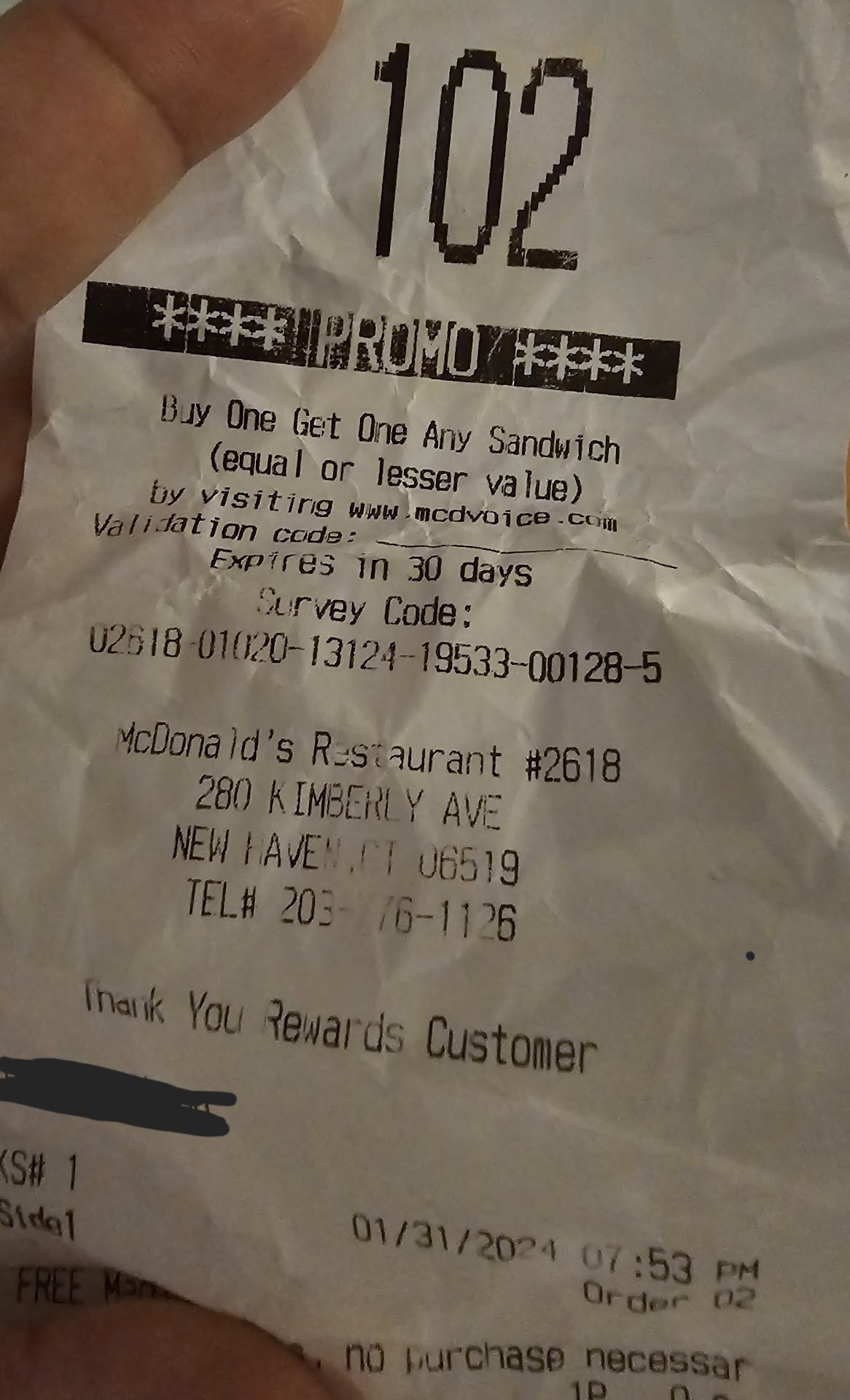 Better training on maintenance of there kiosk machines so that people can receive an actual receipt with survey codes on them, and if the kiosks printers are out of receipt paper making sure they are changed, also proper training on register so they know how to access sales remotely through the main front register.