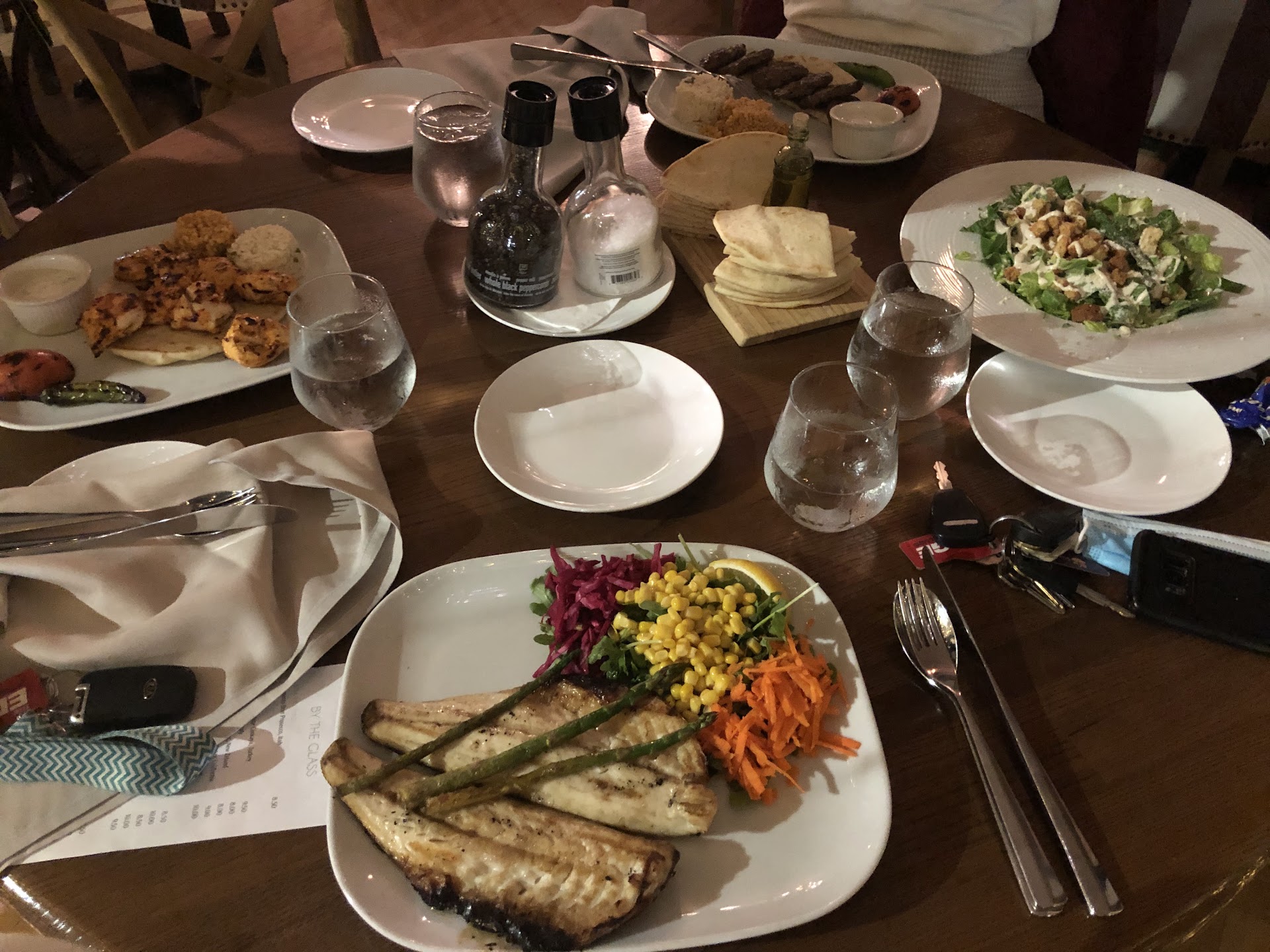 Read moreI came here with my friends on a Tuesday evening so it was just the four of us with the restaurant to ourselves so if we needed assistance we would just wave and our waiter would help us get what we wanted off of the menu. He was excellent, I should’ve gotten his name. Anyway, I got the sea bass, and my friend to the left had the chicken Shish while my friend directly in front of me ordered the Kofte. I’m not sure which salad my friend on the right ordered.
