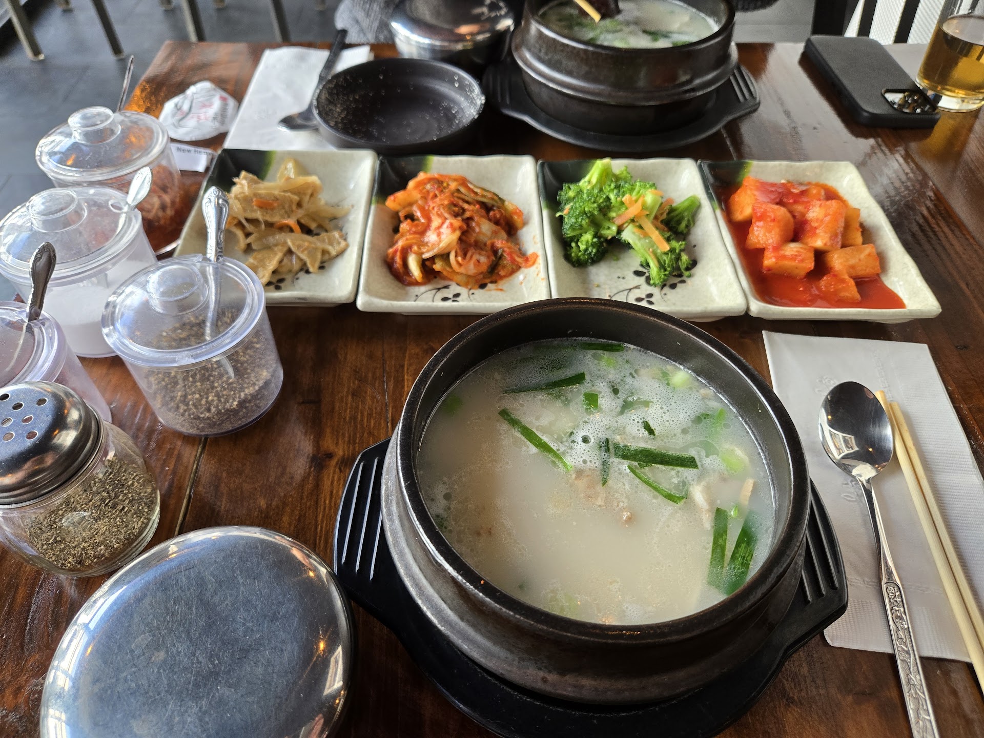 I ordered the pork soup (dwaeji-gukbap), and my friend got the gamjatang (spicy pork bone stew). And let me tell you — the gamjatang was amazing! Not just because we were hungry — it was legit delicious.