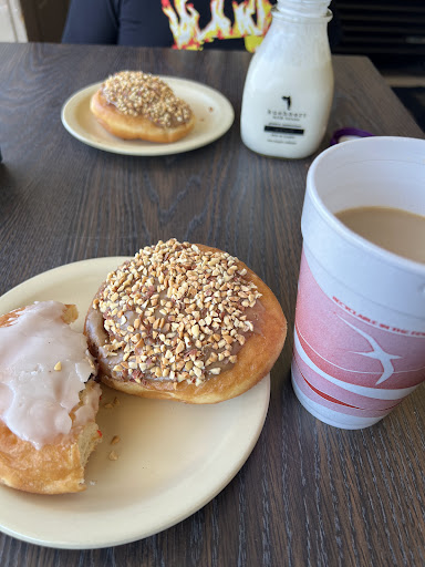 Read moreA small local place. Looks like they mostly do donuts and other breakfast pastries. There are a few small tables for dining in. I got a glazed chocolate cake donut and an apple fritter. The apple fritter was pretty good - crispy on the outside, soft on the inside, but it could have had a stronger apple flavor. The chocolate donut was small, which I like, but it was soft on the outside instead of crispy how I like it. The staff was friendly and efficient and it was very affordable...