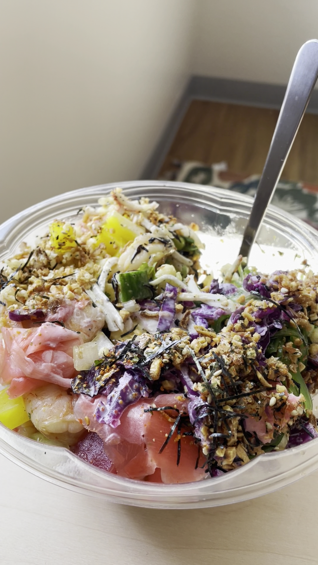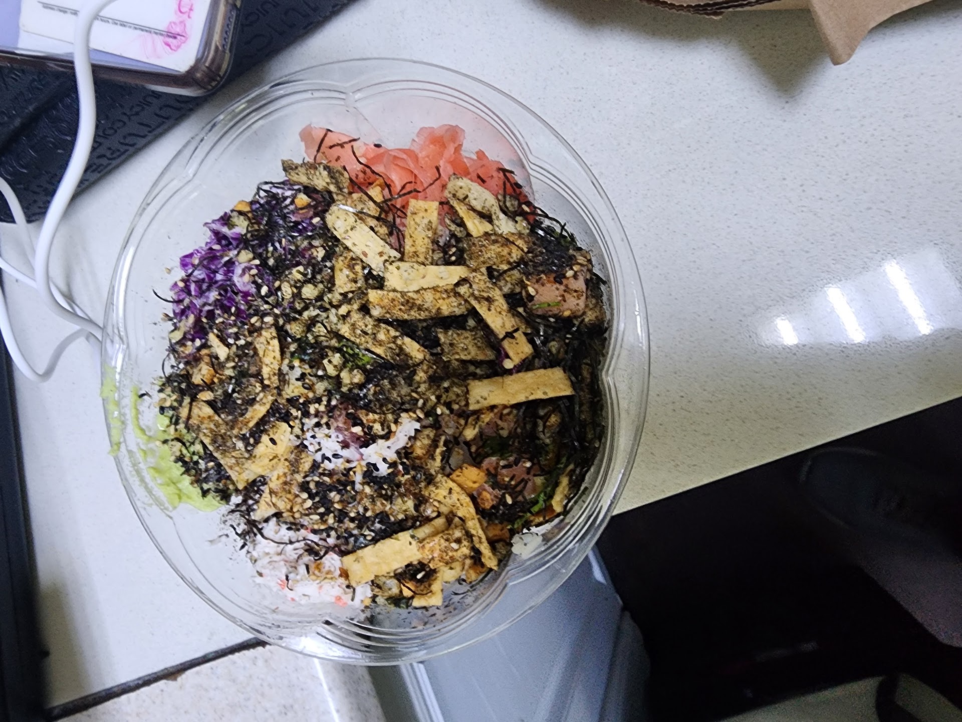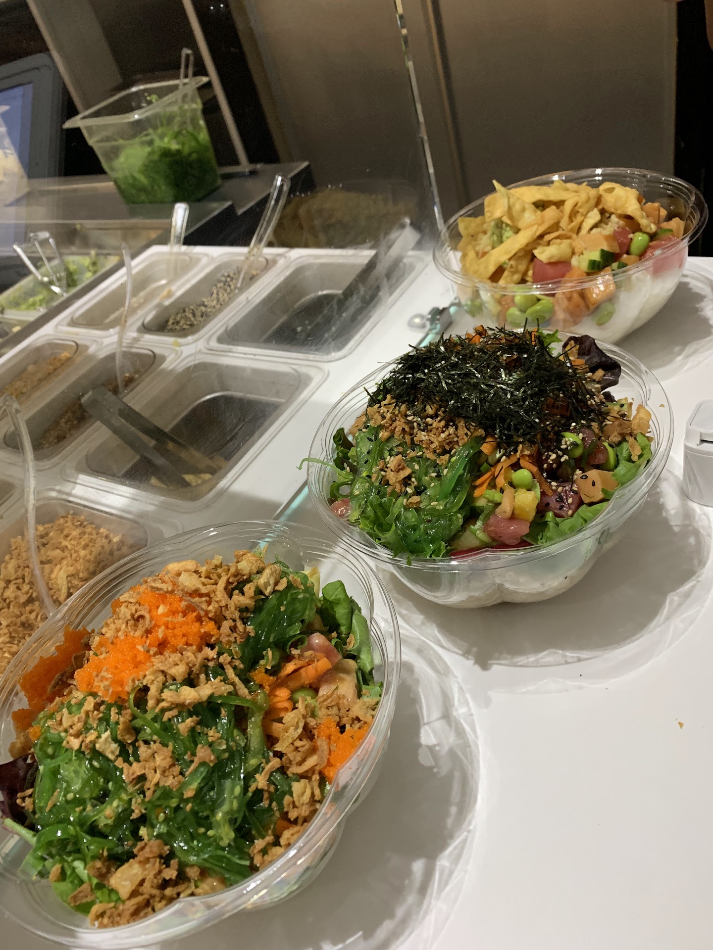 The service was horrible, I went in to get 2 regular bowls for dinner and noticed they were low on some items but proceeded to order because they may have it in the back. I let the girl know that the bowls were going to be similar, with the exception of the sauces. She ran out of the shrimp for 1 of the bowls, so she went and got another container of shrimp with the shell on. I explained to her that you can't service that because they aren't peeled. This is supposed to be ready to eat. She asked if I wanted them, and I said no, so she went back to the freezer, pulled out frozen peeled shrimp, put them in a container, and proceeded to give me those. They were frozen! She didn't seem to understand that this was ready to eat food, meaning I was consuming it within 10 min, so I told her to forget the shrimp and just give me 2 scoops of tuna instead.