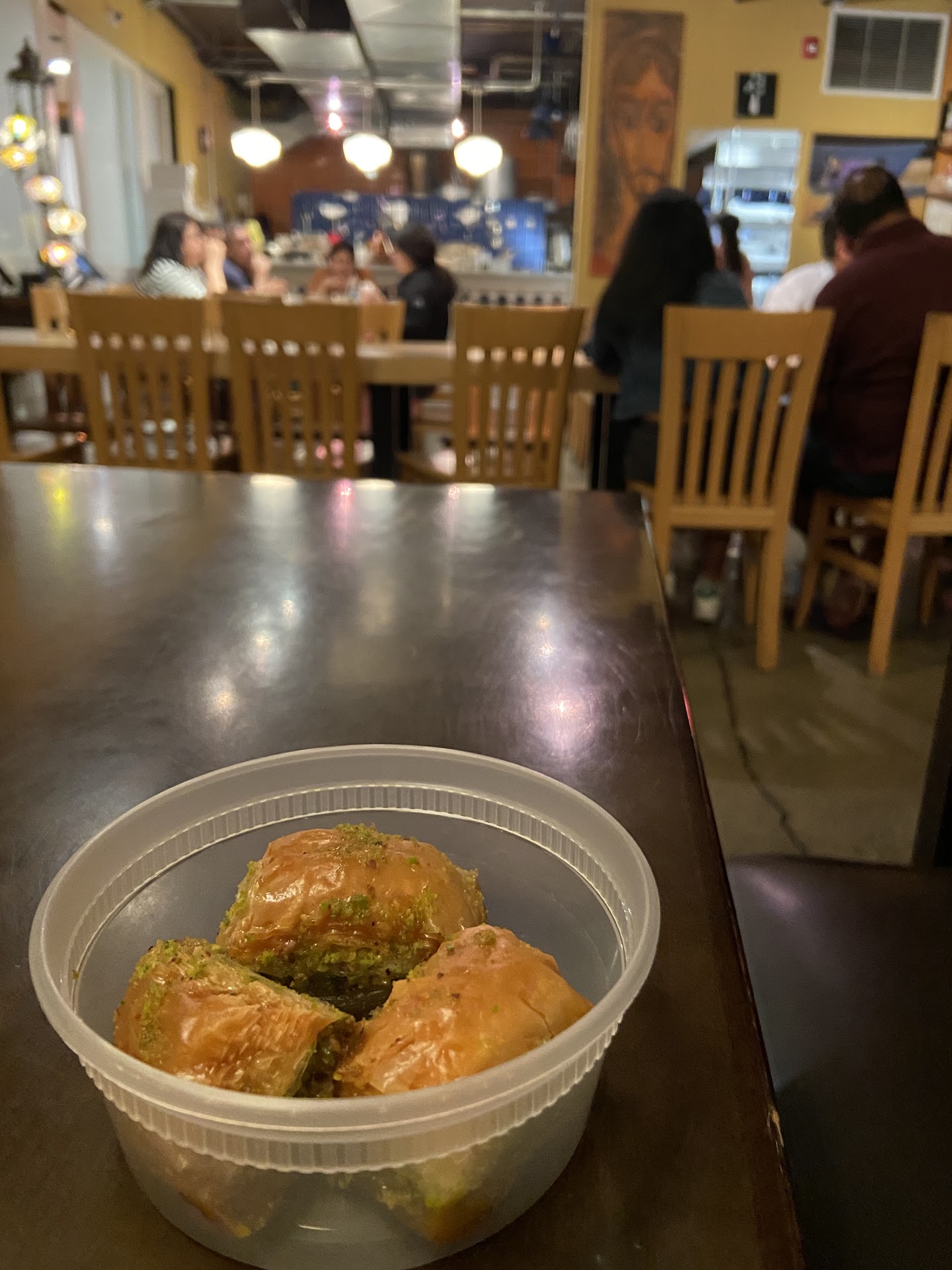 We came in rather late in the evening (9:30 PM) on a Saturday and we were seated quickly. I had the Rawa cocktail (Sauza tequila, Cointreau, and hibiscus infusion), and it was delightfully fresh. We shared the baba ganoush, which came with fresh pita; we devoured it within minutes. For our entrees, we split the falafel plate and the chicken biryani; both were SO good. Seriously, it was the best falafel I’ve ever had—there was some seasoning on them that blew my mind. The chicken biryani was perfectly spicy and was magical with the cucumber mint yogurt sauce. Lastly, we had the baklava; it was super tasty, and I wanted more!