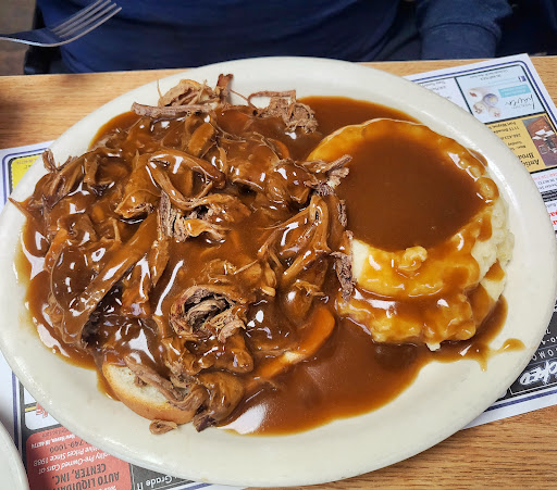Read moreFirst visit today & Won't be the last... The portion size was LARGE but also tasty with a high quality for a budget price. Reminded me of being in a small town house built dinner... I got breakfast, the corned beef hash, eggs, toast, & a side of well done bacon. Hash was great! Could of been a lil more crisp for me but was great. The only thing I thought was slightly lacking was my hashbrowns were onionless (didn't even know I was getting them) or I'd of asked for onions to be added. Eggs were poached nicely & barely any water left in serving bowl with eggs. 👍🏽👍🏽 My first 2 cups of coffee were pretty warm but not hot. Then my finale top off from a different waitress was HOT which I wasn't expecting. Just a heads up for other's. My buddy got the beef manhattan that was HUGE & looked great! He said it was surprisingly very nice as he found no fat & had good...