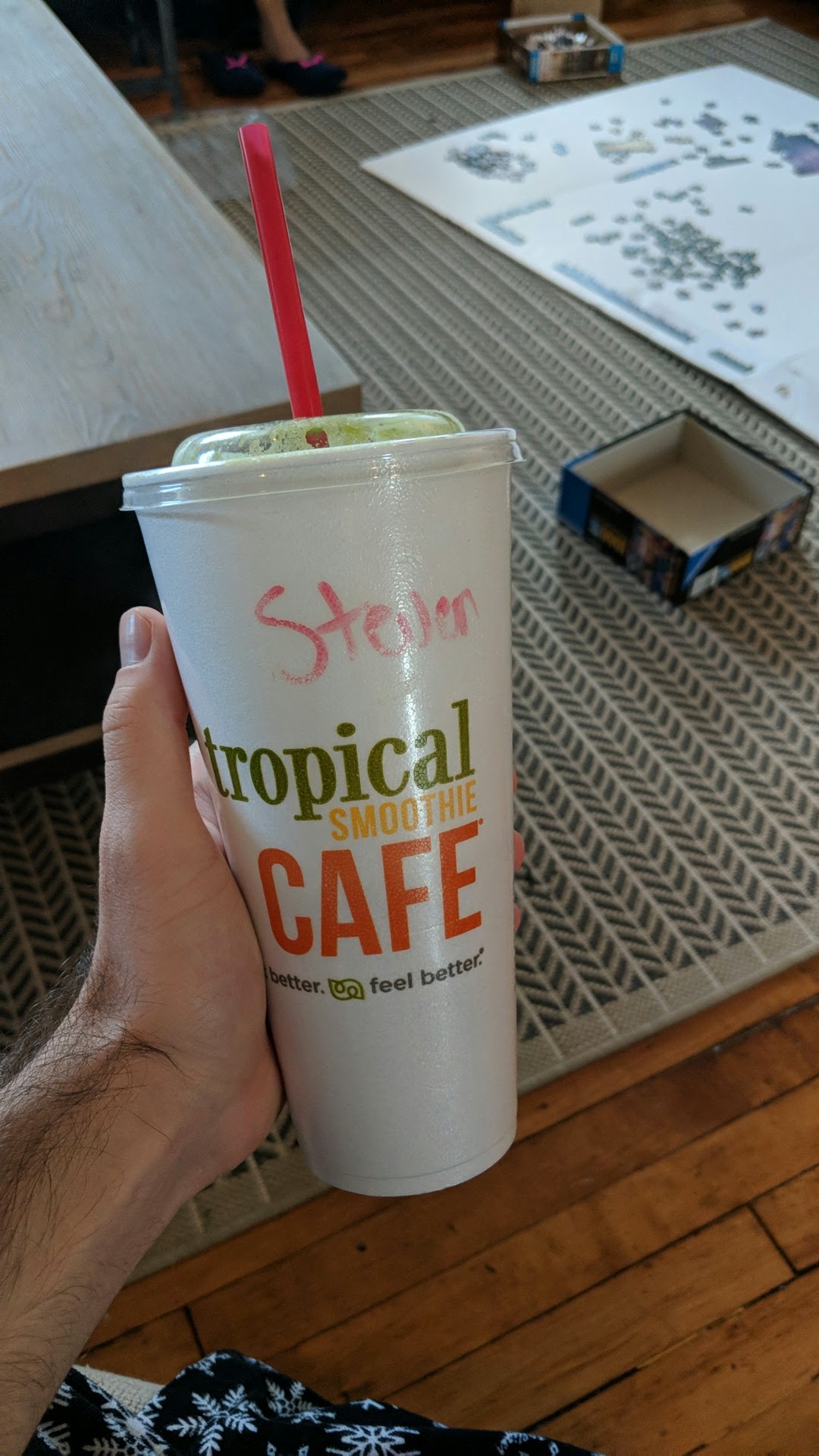 Read moreJuly 21 4:03pm I walked in and purchased two smoothies. On the door is a big poster stating buy 2 get one free everyday after 4 but staff did not offer my free one. Now that’s not my issue. My issues was that they choose to have conversations between them instead of getting my order out and she spilled the smoothie all over the sides of cup wiped down poorly and gave it to me at which point I asked for napkins and stood there cleaning my cup and she didn’t even apologize. This has been my spot for a while now but unfortunately management is doing a poor job at hiring and trading employees correctly and business will drop. So sad because smoothies are delicious and the price is way better...