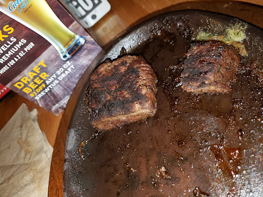 Then the server came back to our table to tell us that the manager had removed the burger from our order that was never ordered in the first place, but the manager STILL didn't come to our table to address my under-cooked steak. That's when my wife and I noticed that the server never cleared any plates from our already crowded table, nor did she refill any of the drinks that we had. Overall we were there for over 90 minutes and I never got to eat a meal. I had to take the kids home and then run out to A DIFFERENT RESTAURANT (Arby's) to get a meal since I never got my steak...
