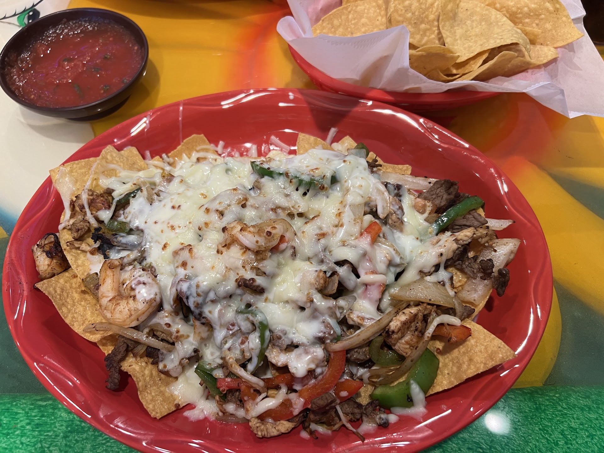Read moreSuch a great vibe in this place, love how colorful it is! Lots of space and the pool table is a fun addition. Food was overall pretty good. The chips were fresh and the salsa was flavorful. I ordered the beefy cheese dip, but I was not a fan. The beef was too thin, which made the texture of the dip watery and gross. Cheese dip by itself was pretty good. Pollo Supremo was delicious, and the mexican rice in it tasted homemade. The portions were nice and big too, had lots left to take home. Our server took good care of us, but unfortunately our drinks were left empty for a long time when we got our food. Will...