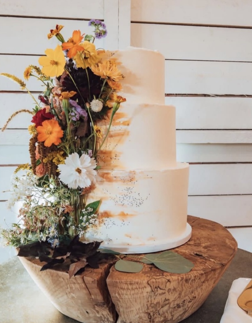 We had the pleasure of working with Kimberly from Factory Girl Bake Shop for our wedding cake, and we couldn’t be happier with how everything turned out! Kimberly delivered the cake to our venue in Doylestown, PA and seamlessly decorated it with flowers provided by our florist (Wild Things Floral Artistry). The result was stunning—the way she arranged the flowers made it look like they were naturally growing from the cake. With the addition of the warm peach/rust color we decided to add, it was a unique and beautiful design!