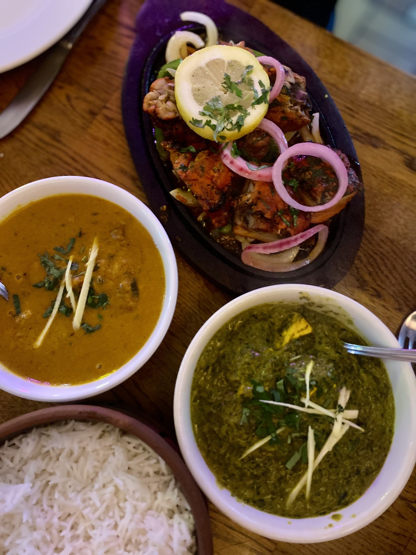 Read moreThe food was insanely hot/spicy! Seriously, even the cold cucumber salad made my mouth feel miserable! Same for the lamb chops. Nowhere on the menu did it state those items were so spicy hot, which really isn’t considerate. The only thing I liked at all, ordered at my table for 9, was the chicken tika masala because the waitress asked how hot one of us wanted it and that person said mild. That wasn’t asked of me and I don’t know why. I would never have expected the dishes I mentioned to be so hot so it would have been nice if they asked! My poor 8 year old grandson ordered them too and couldn’t eat them. Such a waste of money! Good flavorful meat doesn’t need, nor should it be so spicy hot it leaves your mouth feeling burnt! Also, a little atmosphere would be nice too. Place looks so dumpy and feels unclean. Obviously I wouldn’t...