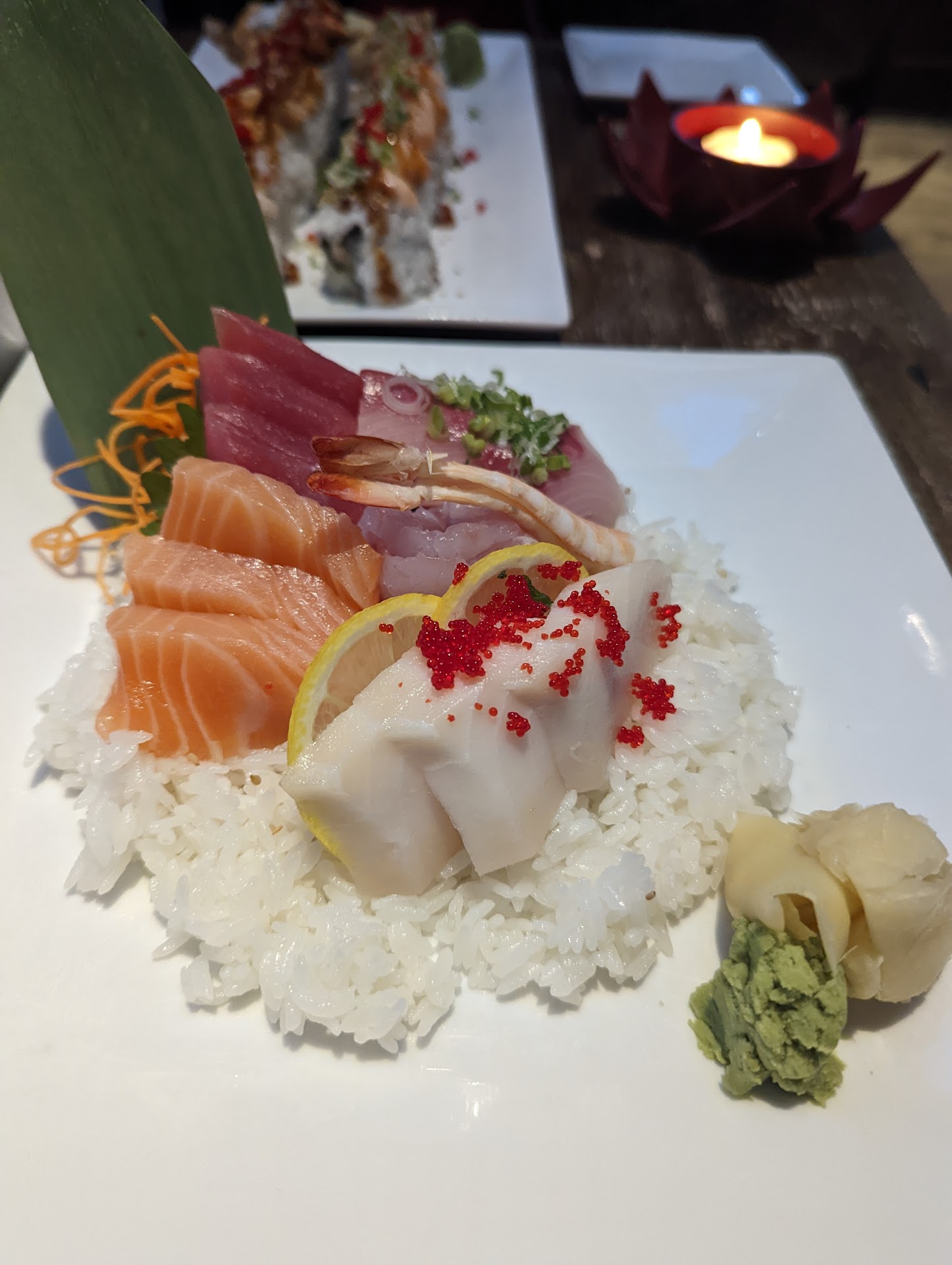 Read moreThis was our first time dining at Nozomu. We started with the Sushi Sundae w/rock shrimp and edamame. The rock shrimp were not hot and the batter did not stick to the shrimp, was a mess to be honest. The edamame was the usual steamed edamame. I told the server that we didn’t want the sushi sundae and brought over the manager. In the restaurant business, you always need that one person that can turn a bad experience into a great one, Amanda did just that. Our server was not great but Amanda’s passion and attention saved the night for us. We replaced the sushi sundae with the sashimi salad which had a bountiful amount of salmon, tuna and hamachi on it. Very fresh, just needed more acid (rice vinegar).