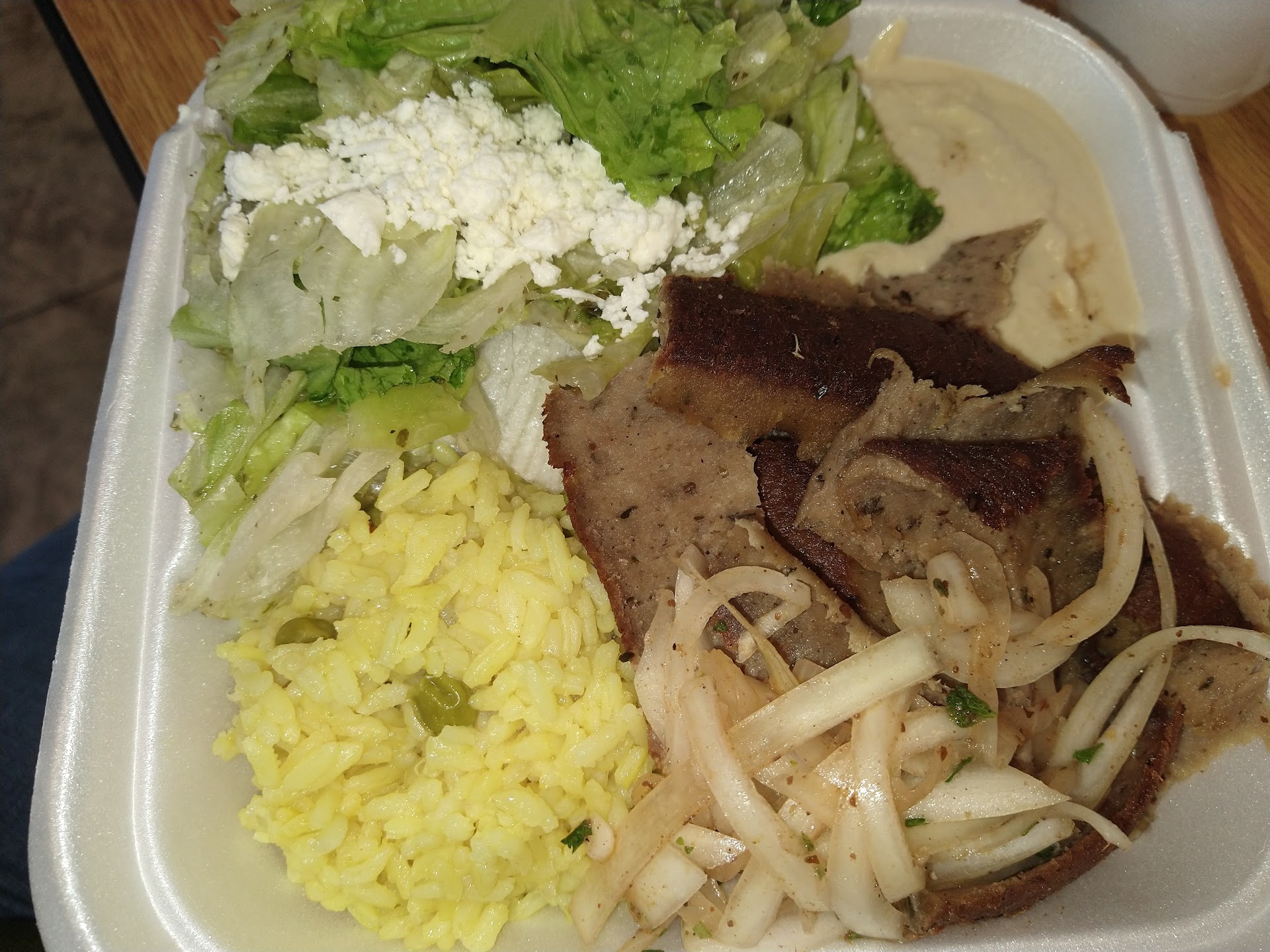 To note about the food: the bread was kinda hard and not very soft like I prefer. It was thin. The hummus wasn't very thick and the chicken wasn't super flavorful. The chicken was somewhat dry and hard. The portion sizes are about half as large as what you can get for a few dollars more someplace else in Iberia Parish.