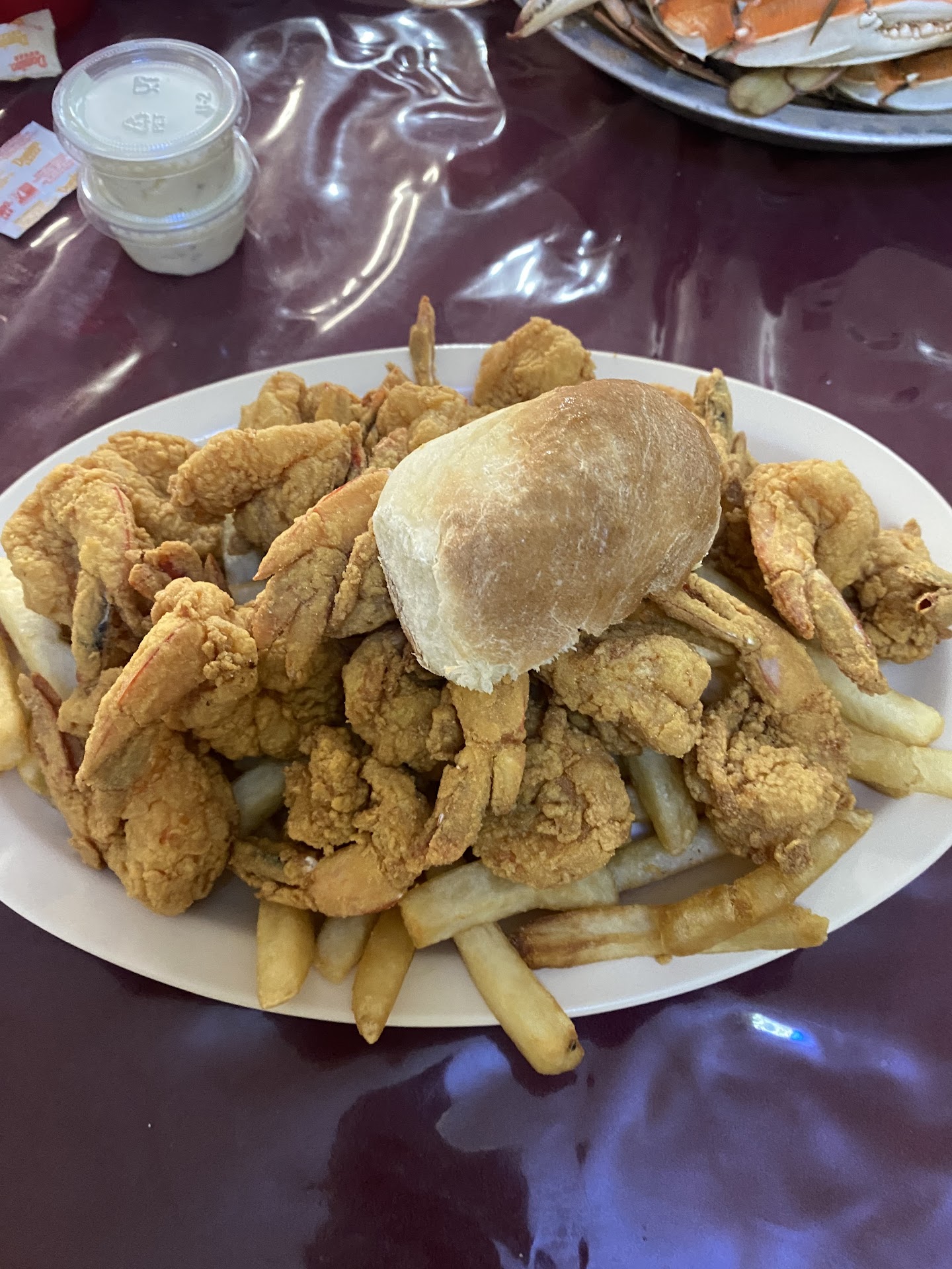*To go Seafood Platter. The fish was seasoned well. As for the other items, there was no complaint from my hubby. The only complaint is the salad dressing was missing from the order and the stuffed crab was dry.