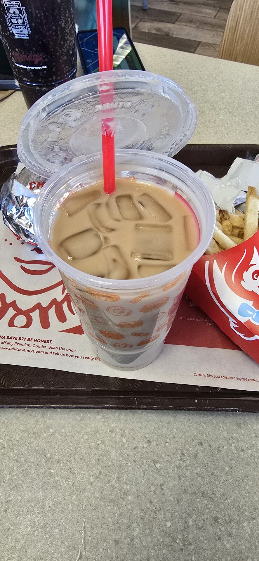 Read moreFirst, cashier was unfriendly. Second, we waited 15 minutes for our food, thinking maybe they had to fry the French fries. No, ALL of our food was freezing cold. I had the grilled chicken wrap and it fell apart, so I picked the cold chicken out and tried to eat it. Also, the dining area was filthy, which should have been my first alarm to tell me to leave. There were no napkins or cold drink lids. The trash can was full to the top. Bathrooms were also dirty. There were four or five workers in the back and they were not busy at all. This experience really turned me off of eating at Wendy's, which I have always...