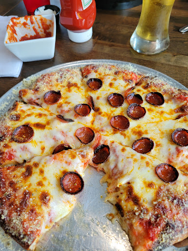 Now to the food. Burgers were pretty good, quesadilla was good, wrap was just okay, and the cobb salad really good. Now to the pizza, very skimpy toppings, sauce is bland, plenty of cheese and the crust is the best part. Unfortunately it arrived cold and without the extra sauce I asked for. Definitely not worth the 20 bucks it cost. The apps were okay but also way...