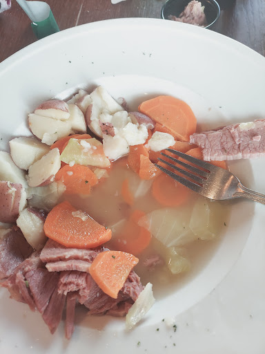 Read moreForget the corned beef n cabbage! I make the corned beef at home so I'm guessing this just wasn't cooked enough. There was so much Gristle that we had to keep spitting it out. It was not tender. We think it was a very inexpensive cut for sure. The carrots were hard and crunchy. The Cabbage was good the potatoes were good. Soda bread tasted burnt. And it was all floating in water. Like soup. Would not recommend. Told our waiter. He said sorry. See the picture for all the gristle. And then see our plates that we sent back. Didn't even want to take it to go.