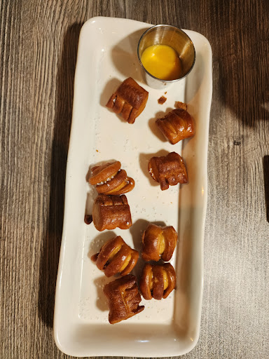 From the appetizers I ordered pretzel bites. These came out on plate of wilted and brown lettuce. And they came with ice cold dipping cheese. The pretzel bites appeared to just be over burnt croissants cut up with salt on them. They were not pretzels at all.